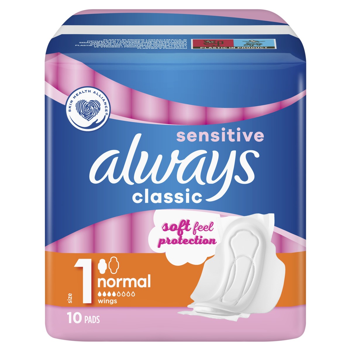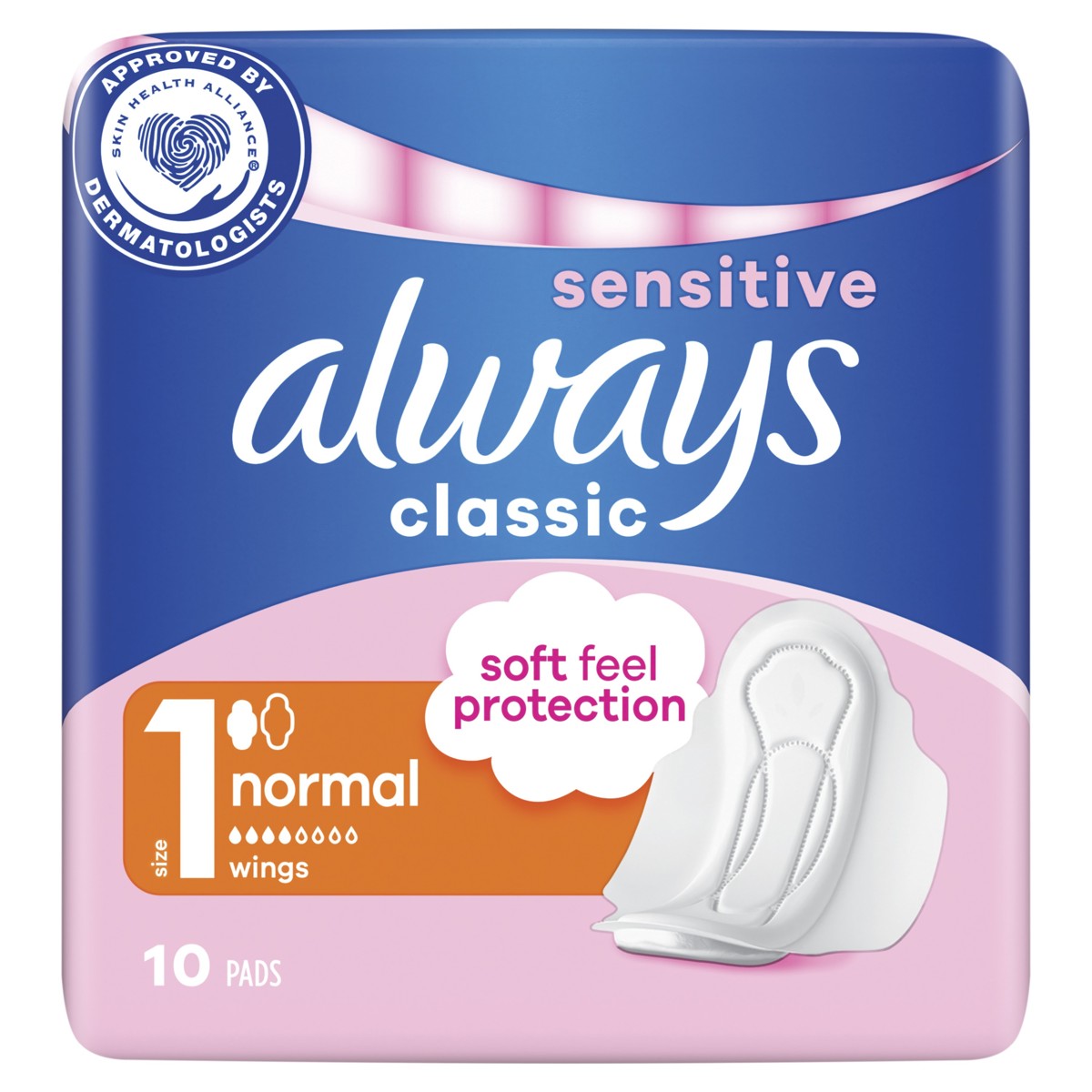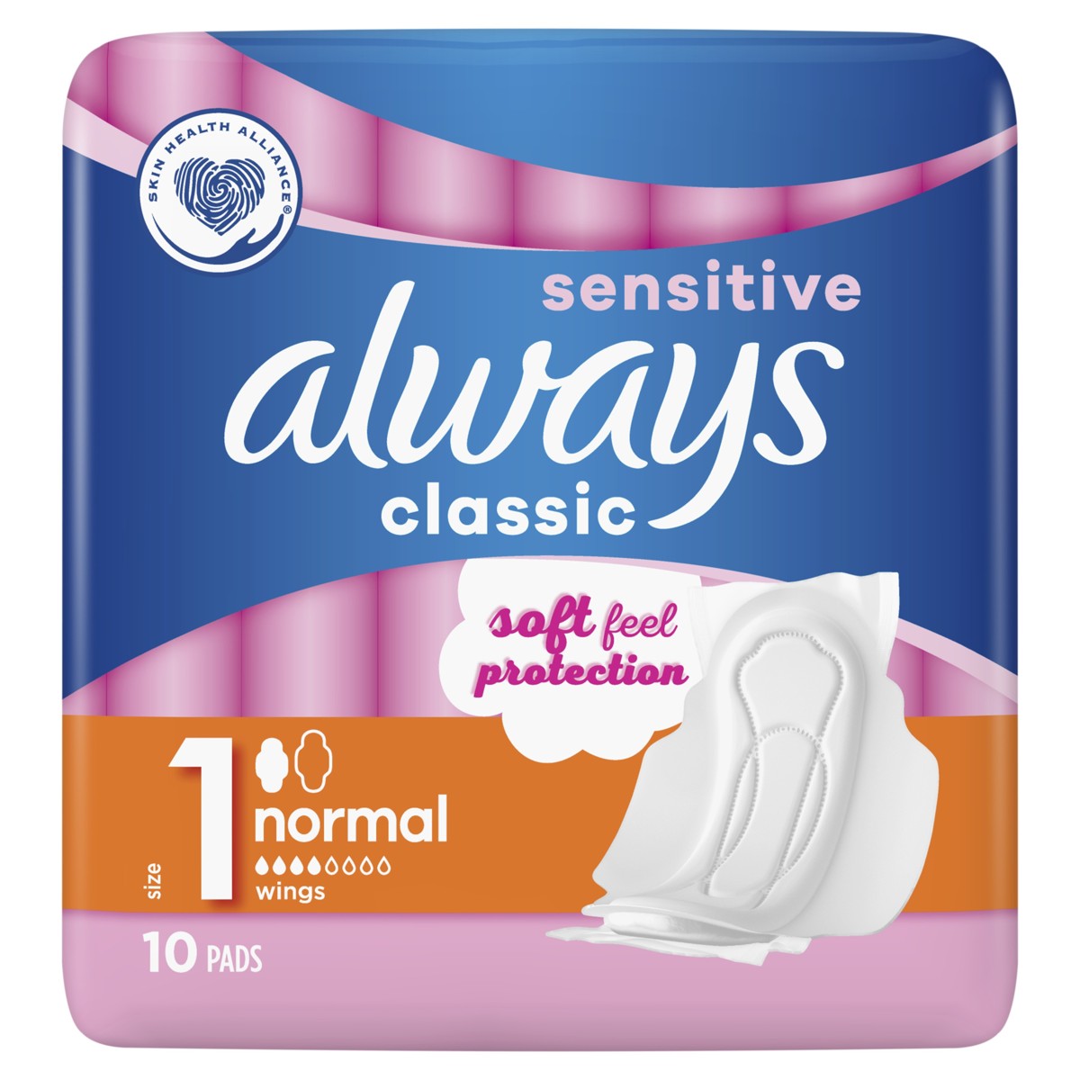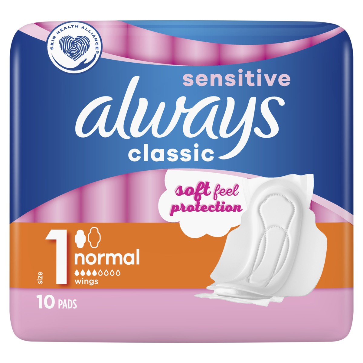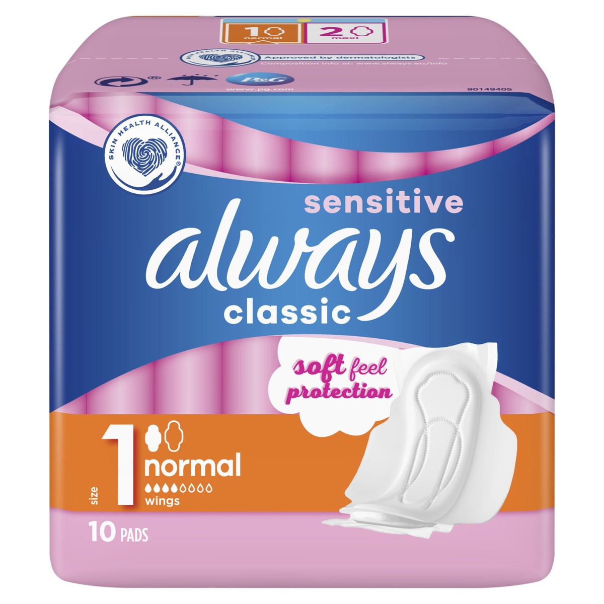 Higijenski ulošci s krilcima Always Classic Sensitive Normal pružaju meku zaštitu s 3 zone djelovanja kako biste se osjećali zaštićeno i ugodno tijekom cijelog dana.