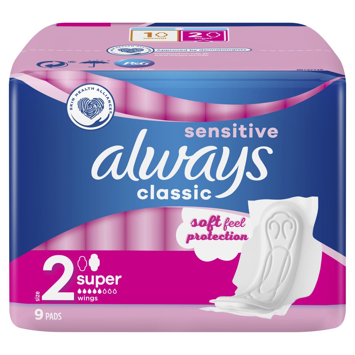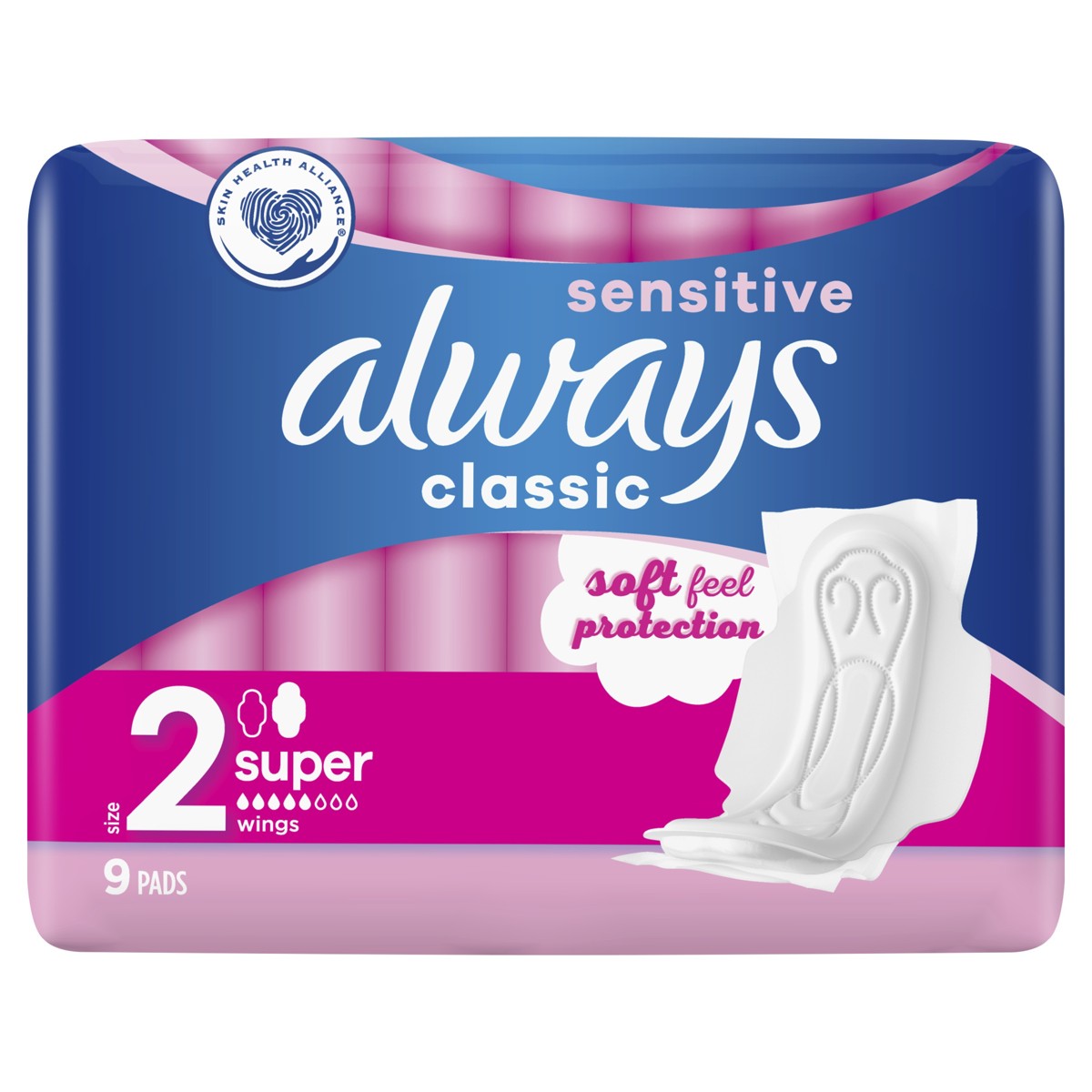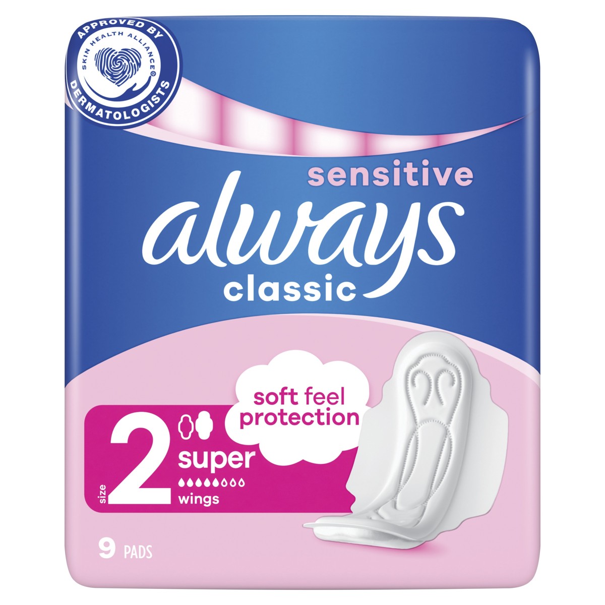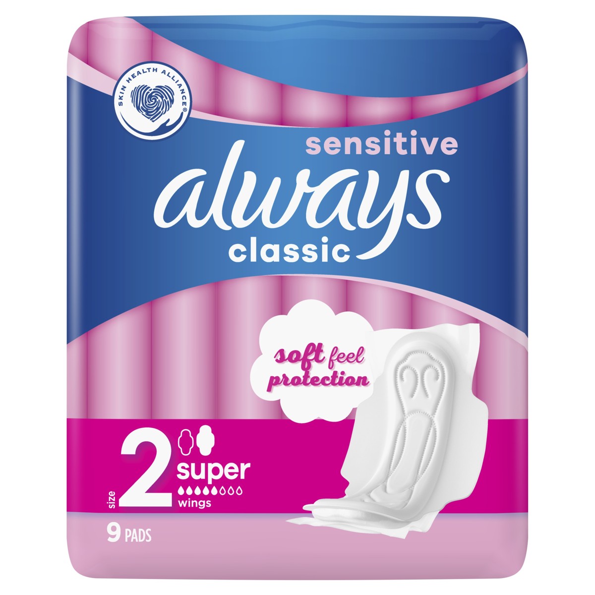 Higijenski ulošci s krilcima Always Classic Sensitive Long pružaju meku zaštitu s 3 zone djelovanja kako biste se osjećali zaštićeno i ugodno tijekom cijelog dana.