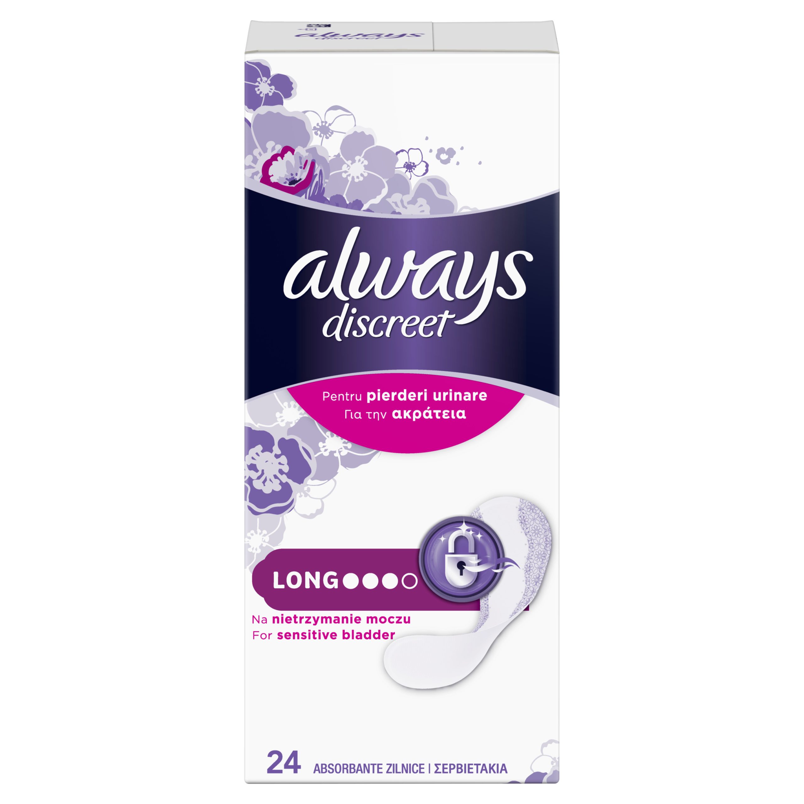 Tanki ulošci Always Discreet Long, 24 komada. Za trenutke kada vam treba malo dodatne zaštite tu su tanki ulošci za inkontinenciju Always Discreet. Njihova pouzdana tehnologija Odour Lock pruža svježinu i daje vam samopouzdanje na koje se možete osloniti. U slučaju urinarne inkontinencije isprobajte tanke uloške Always Discreet za slab mjehur. Dostupni su u veličinama Normal, Long i Long Plus.