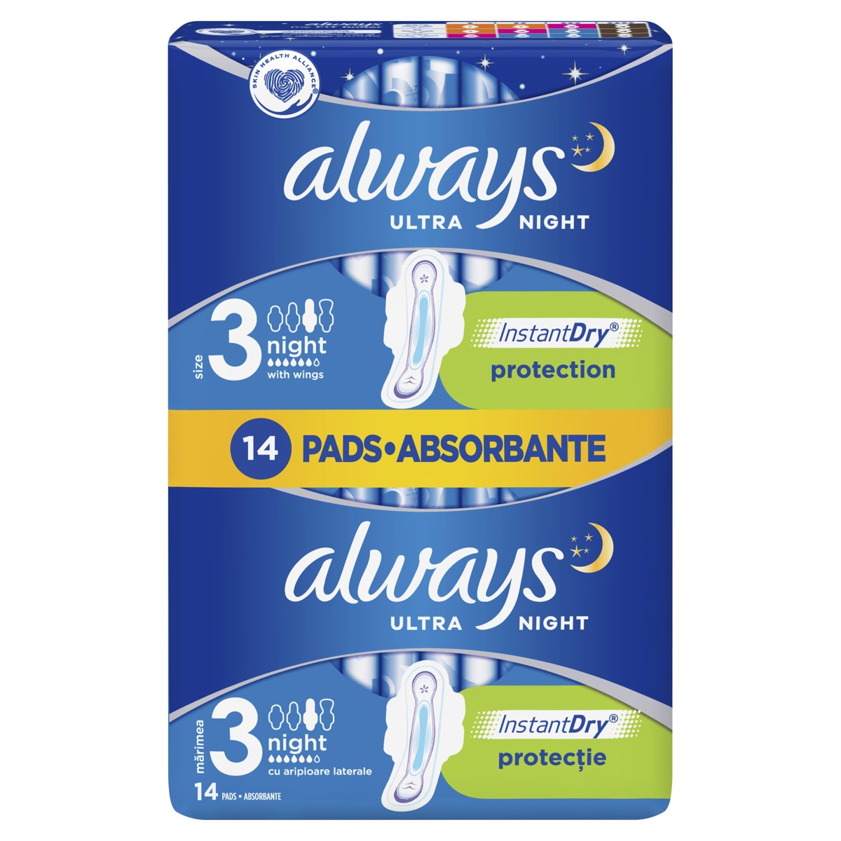 Ne pristajte na ništa manje od trostruke zaštite: pri izradi higijenskog uloška Always Ultra Day & Night (veličina 3) koristi se najnovija tehnologija kako bi se proizveo multifunkcionalni uložak s tri zaštitne značajke. Sustav InstantDry upija tekućinu u nekoliko sekundi i drži vlažnost podalje od kože. Tehnologija LeakGuard zadržava tekućinu i pomaže spriječiti propuštanje. Tu je i tehnologija OdourLock koja neutralizira neugodne mirise kako biste se osjećali svježe i čisto tijekom mjesečnice. Uz Always Ultra možete se osjećati samopouzdano tijekom cijelog dana. Nemojte pristati na ništa manje od trostruke zaštite koju pruža Always.Dermatološki odobrilo udruženje Skin Health Alliance. Isprobajte Always Ultra Secure Night Extra s krilcima, najbolje Alwaysove higijenske uloške za zaštitu tijekom noći.Pronađite svoju idealnu veličinu pomoću sustava Always My Fit koji pomaže u odabiru prikladne veličine uloška za najbolju Alwaysovu zaštitu na temelju obilnosti mjesečnice i veličine gaćica.