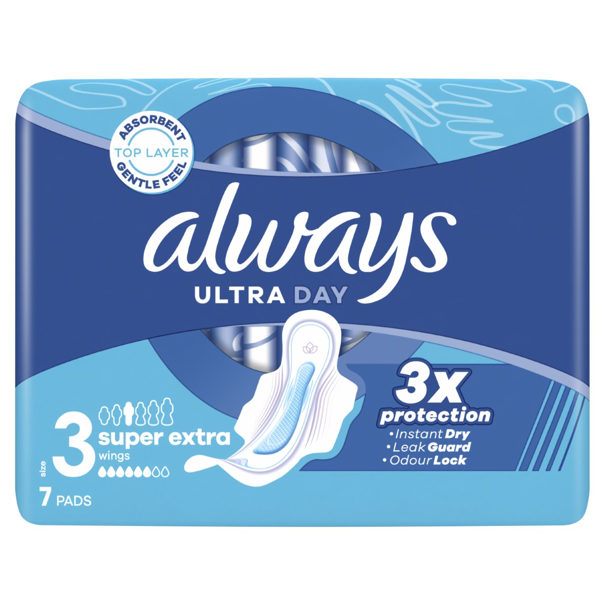 Sustav InstantDry upija tekućinu u nekoliko sekundi i drži vlažnost podalje od kože. Tehnologija LeakGuard zadržava tekućinu i pomaže spriječiti propuštanje. Tu je i tehnologija OdourLock koja neutralizira neugodne mirise kako biste se osjećali svježe i čisto tijekom mjesečnice. Uz Always Ultra možete se osjećati samopouzdano tijekom cijelog dana.