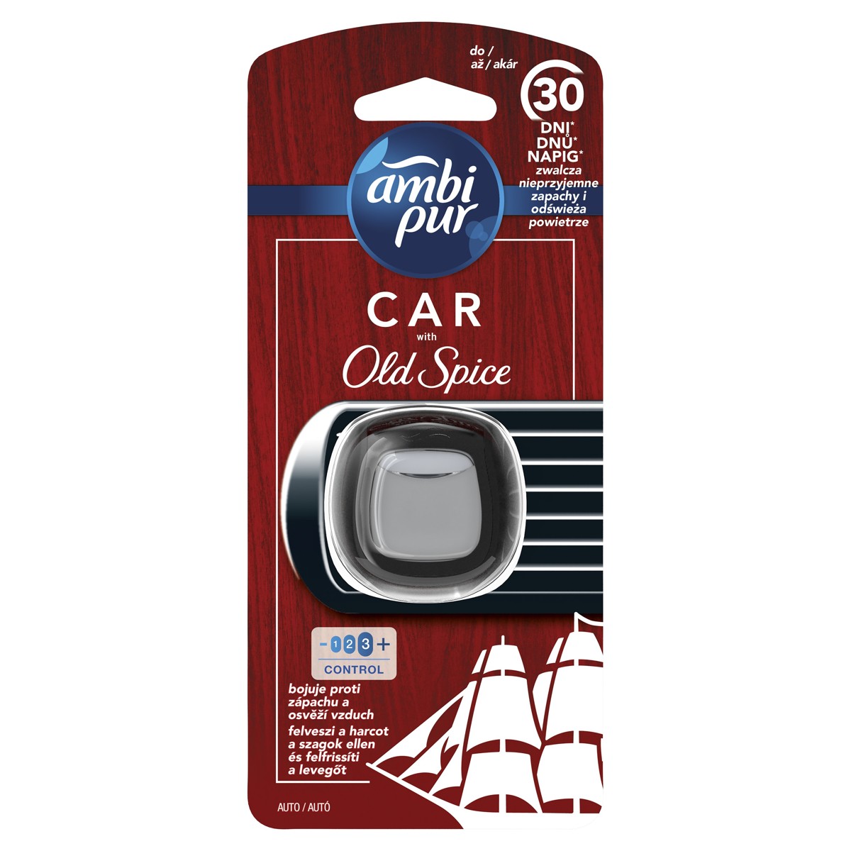 Neka tvoj automobil uvijek miriše jednako dobro kao i ti. Osvježivač Ambi Pur Old Spice s laganim notama citrusa i metvice odiše svježinom i muževnošću. Njegova tehnologija Odourclear ne maskira neugodne mirise već ih uistinu uklanja, čak i one najupornije poput mirisa hrane, kućnih ljubimaca, dima ili otpada, a ostavlja blag, svjež miris, koji traje i do 30 dana. Osvježivač Ambi Pur ne treba baterije ni električnu struju, malen je i diskretan te se lako postavlja na ventilacijski otvor u automobilu, a intenzitet mirisa regulirate uz pomoć kotačića.