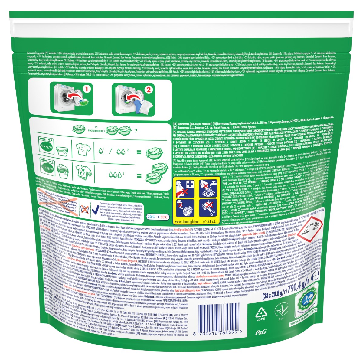 Ariel, marka koju preporučuju Whirlpool, Electrolux, Candy i Beko, predstavlja kapsule tekućeg deterdženta za pranje rublja Ariel Allin1 PODS®+ Touch of Lenor Fresh Air! Imaju dodatnu plavu komoru te pružaju dubinsku čistoću i sedmodnevnu dugotrajnu svježinu (u ormaru). Osmišljene su za izvanredno čišćenje čak i na programima s nižim temperaturama pranja, brzo se otapaju čak i u hladnoj vodi te pružaju besprijekorne rezultate. Za najbolje rezultate, u bubanj perilice prvo stavite kapsulu, a zatim rublje na nju.