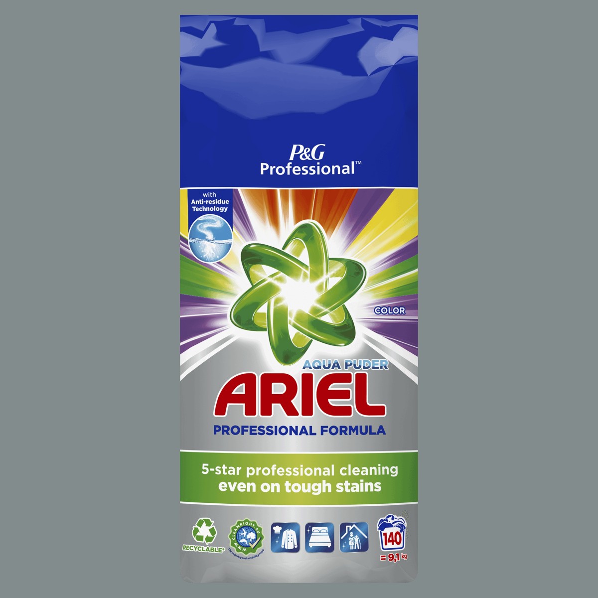 Praškasti deterdžent Ariel Professional Color profesionalni je deterdžent posebno formuliran kako bi očistio za 5 zvjezdica, baš kako traže profesionalci: odlično uklanja mrlje, dubinski čisti i svjež miris te je učinkovit pri niskim temperaturama.