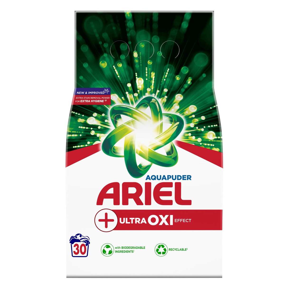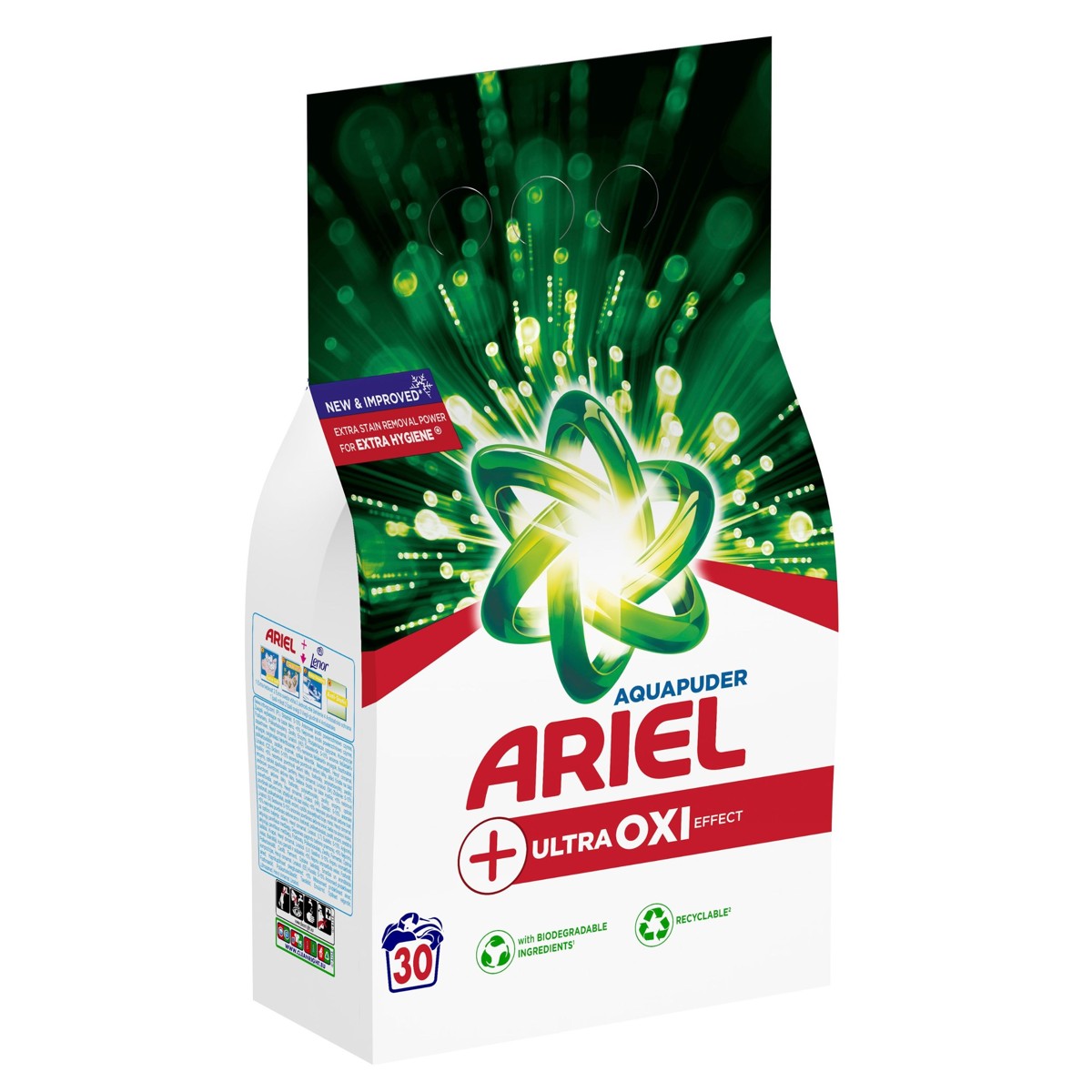 Ariel +Extra Clean Power dolazi u pakiranju koje se može reciklirati, a dostupan je i kao tekući deterdžent i u obliku kapsula.