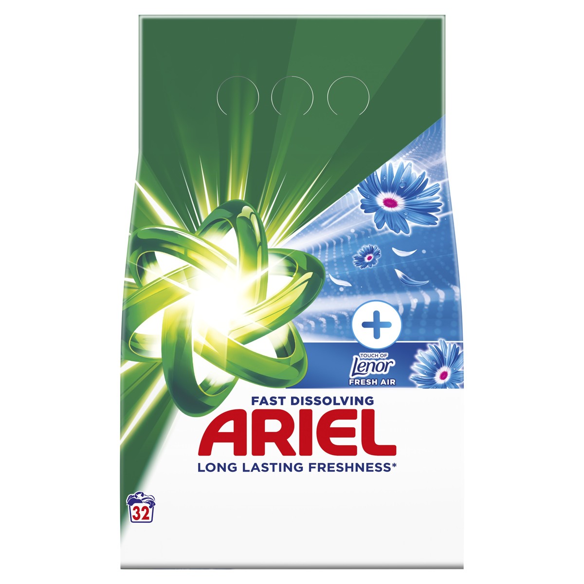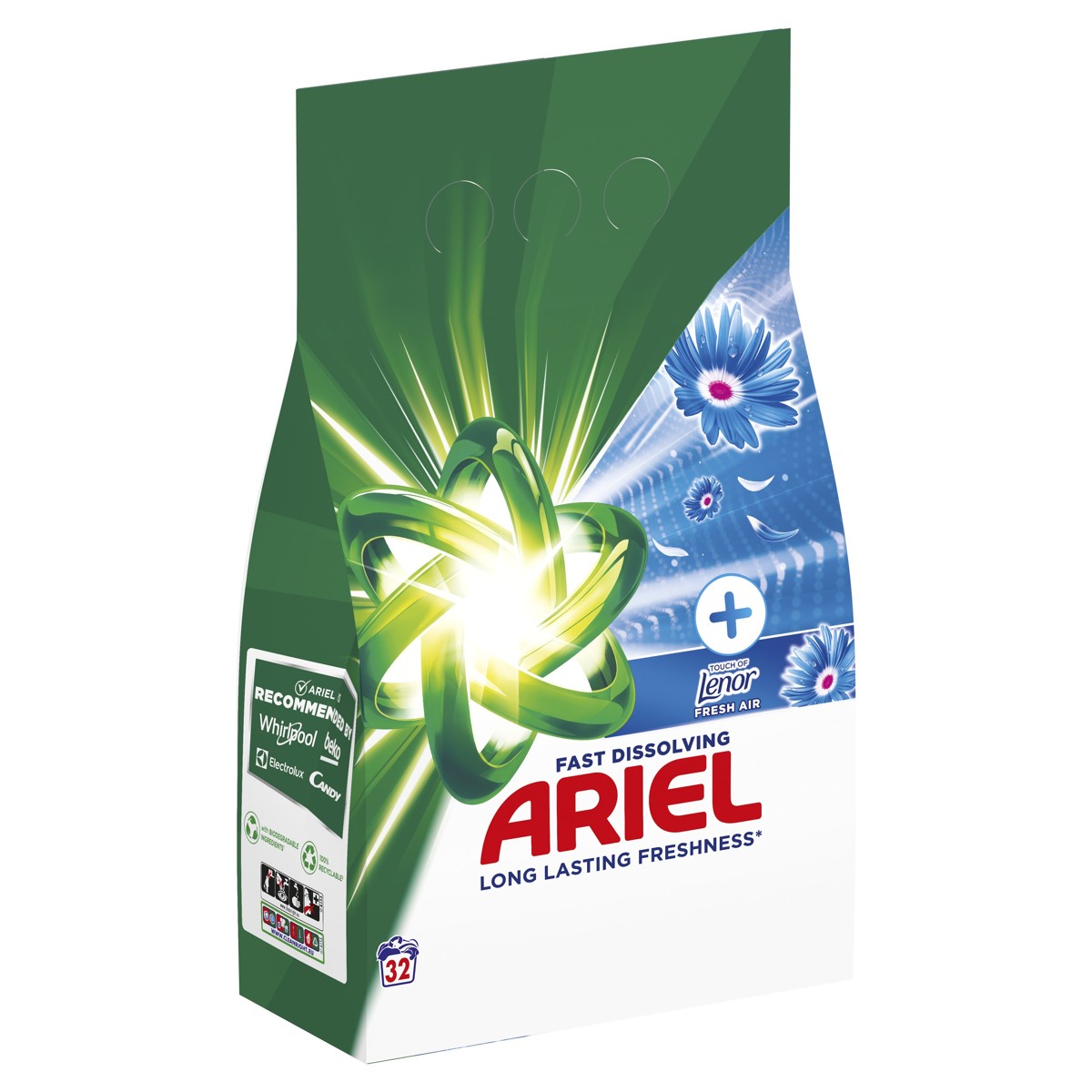 Ariel +Touch of Lenor Fresh Air pruža dugotrajnu svježinu do 2 tjedna (u ormaru) i izvanredno iskustvo čišćenja čak i pri pranju na nižim temperaturama. Zahvaljujući jedinstvenoj tehnologiji brzo se otapa u dodiru s vodom, trenutno se aktivira i prodire duboko u vlakna čak i na niskim temperaturama pranja.