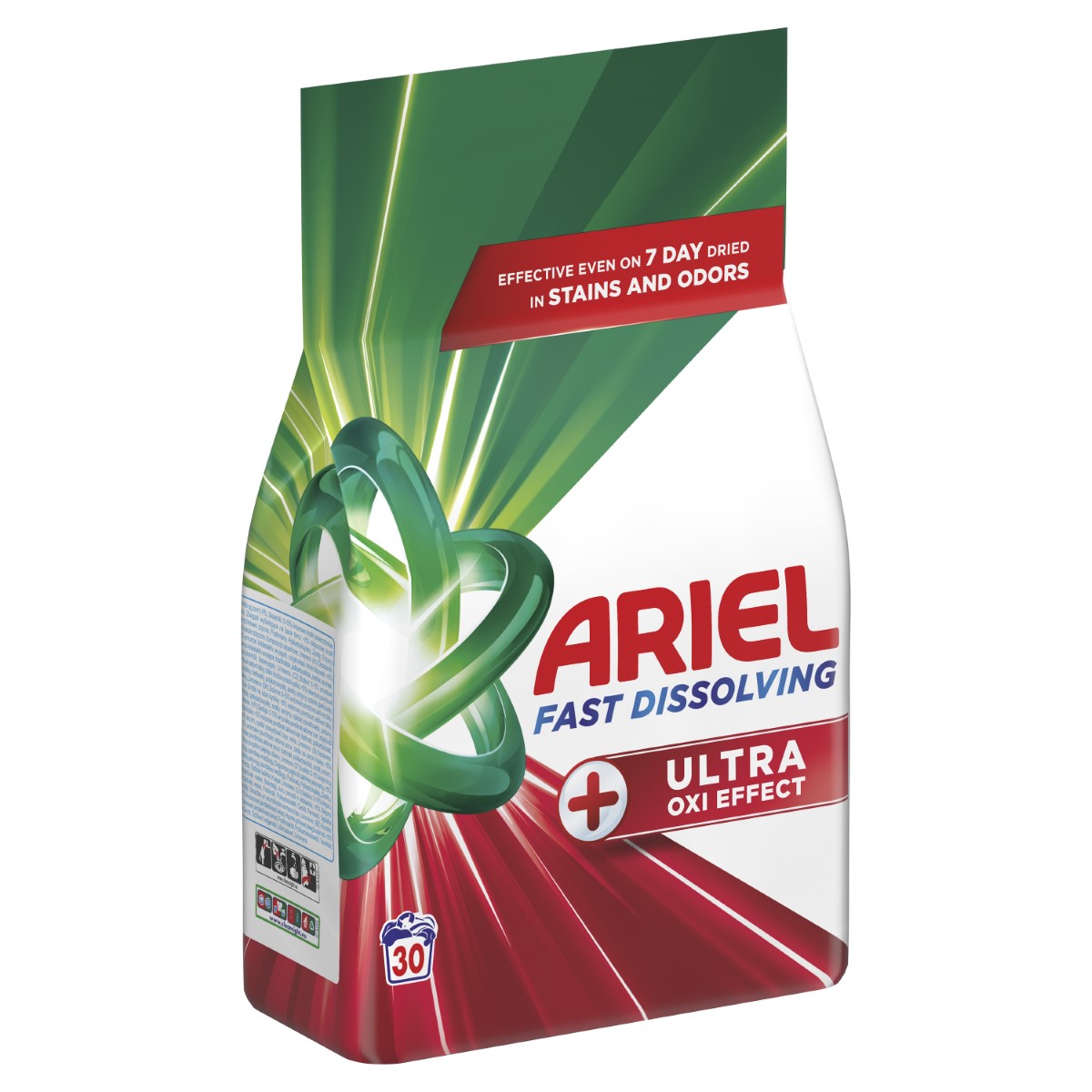 Ariel, marka koju preporučuju Whirlpool, Electrolux, Candy i Beko, predstavlja brzo topivi praškasti deterdžent za rublje + Ultra OXI Effect koji učinkovito uklanja čak i sedmodnevne skorene mrlje i neugodne mirise. Zahvaljujući jedinstvenoj tehnologiji brzo se otapa u dodiru s vodom, trenutno se aktivira i prodire duboko u vlakna, čak i na niskim temperaturama pranja. Pranje na nižim temperaturama dulje štiti tkanine u usporedbi s pranjem na višim temperaturama.