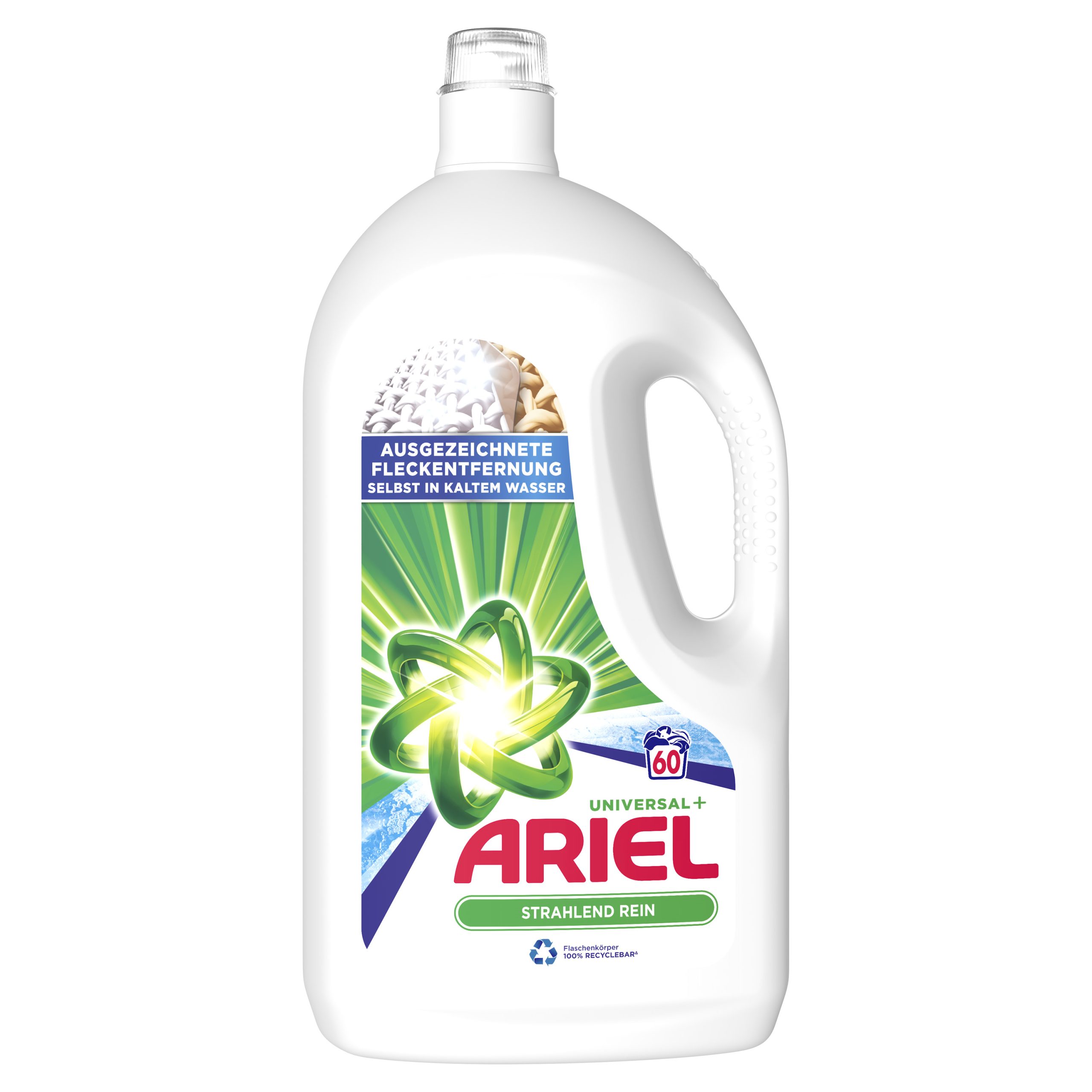 Tekući deterdžent za pranje rublja Ariel Universal+ omogućava vrhunsko uklanjanje mrlja, čak i na nižim temperaturama. Ujedno oživljava blistavost vašeg bijelog rublja i sprečava nastanak mrlja od znoja.