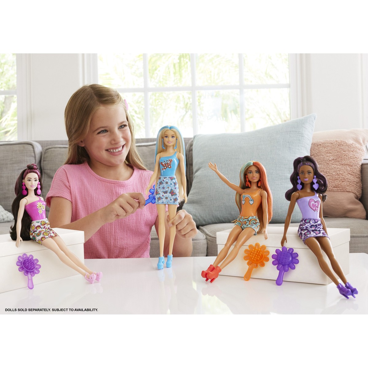 Barbie Color Reveal lutke pružaju iskustvo raspakiranja puno iznenađenja, njih šest! Uz ovu seriju nadahnutu dugom, djeca pronalaze jednu od četiri jedinstvene lutke – svaka ima dugu kosu s pramenom u boji i slatku naljepnicu inspiriranu modom iz 1960-ih. Preobrazite naljepnicu ledeno hladnom i toplom vodom za ponovni wow trenutak! Koju ćete lutku otkriti? Dodaci uključuju suknju s odgovarajućim uzorkom, šarene cipele, cvjetnu četku i elegantne naušnice. Koristite tubu za pakiranje za pohranjivanje ovih i drugih komada. Djeca ih mogu skupljati sve za zabavu miješanja i spajanja. Svaki se prodaje zasebno, ovisno o dostupnosti. Lutke ne mogu stajati same. Boje i ukrasi mogu varirati. Igračka dolazi u više različitih modela, a isporuka ovisi o njihovoj trenutnoj raspoloživosti.