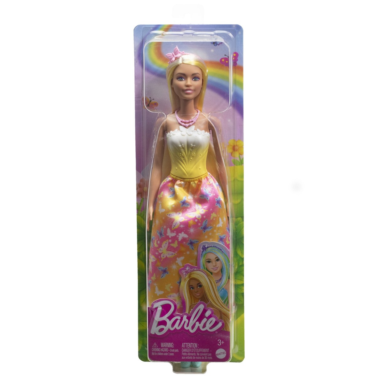 Ova Barbie® lutka je spremna za igru u elegantnom kraljevskom izdanju! Ima jarko obojene pramenove u kosi i nosi prekrasno detaljiran ombre korzet s pripadajućom suknjom s motivom leptira.