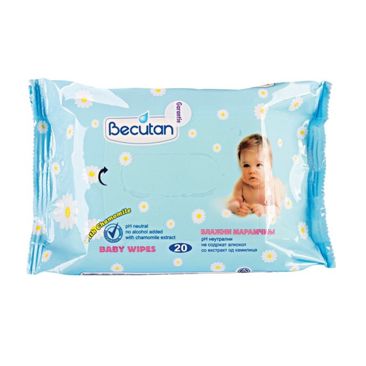 Becutan vlažne maramice namijenjene su čišćenju i njezi kože kod svakog prematanja, a izvrsne su i za održavanje higijene bebinog lica i ručica. Maramice su mekane strukture i sadrže hidratantni losion s ekstraktom kamilice koji štiti kožu od iritacija i smiruje crvenilo. Nakon korištenja, na površini kože ostavljaju tanak zaštitni sloj koji održava kožu čistom i zdravom. Proizvod ima neutralnu pH vrijednost, dermatološki je testiran te ne sadrži alkohol ni parabene.
