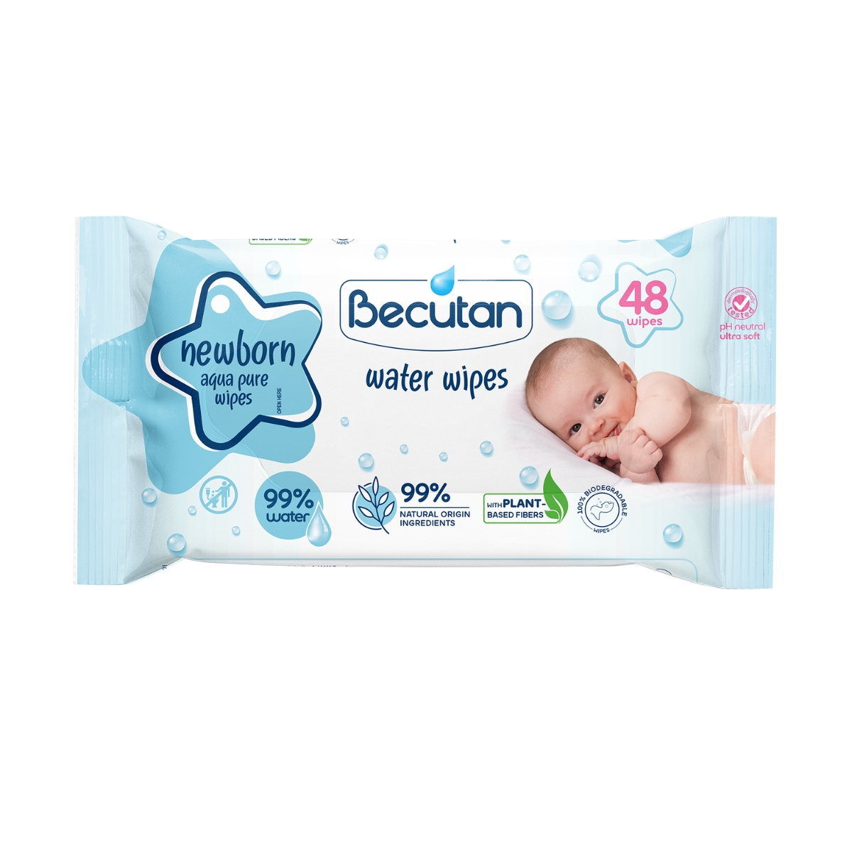 Becutan vlažne maramice newborn aqua posebno su razvijene za najosjetljivije razdoblje života, sadržeći do 99 % pročišćene vode. Zahvaljujući visokom udjelu vode, imaju ključnu ulogu u održavanju svakodnevne higijene kože novorođenčadi. Pažljivo odabrana formulacija u potpunosti je bez parfema i alkohola, čime se minimalizira rizik od iritacija. Maramice su iznimno nježne, hipoalergene i posjeduju neutralnu pH vrijednost, uz potvrđenu dermatološku sigurnost.