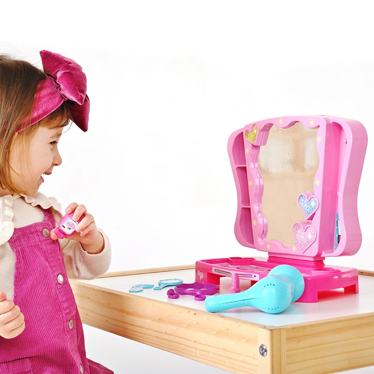 Uz 11 očaravajućih dodataka za ljepotu, uključujući realistično sušilo za kosu, elegantni češalj za savršeno oblikovanje, roleplay ruževe za beskrajne makeovere, mirisnu kolonjsku vodu za dašak elegancije, te blistave narukvice i prstenje za upotpunjavanje svakog izgleda, mogućnosti za zabavu i kreativnost su beskrajne.