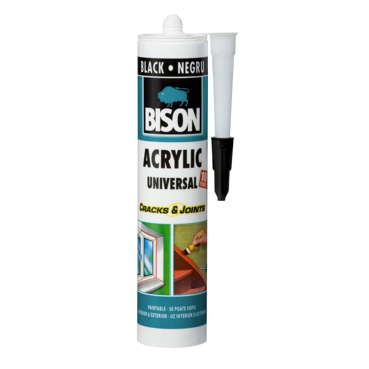 Obojivo akrilno silikonsko brtvilo crne boje prikladno za brtvljenje spojeva, šavova i pukotina koji "rade", odnosno s malo pomicanja na okvirima vrata i prozora, prozorskim klupčicama, drvenim oplatama, stepeništima, zidnim lajsnama, zidovima, gipsanim pločama, stropovima i cjevovodima.
