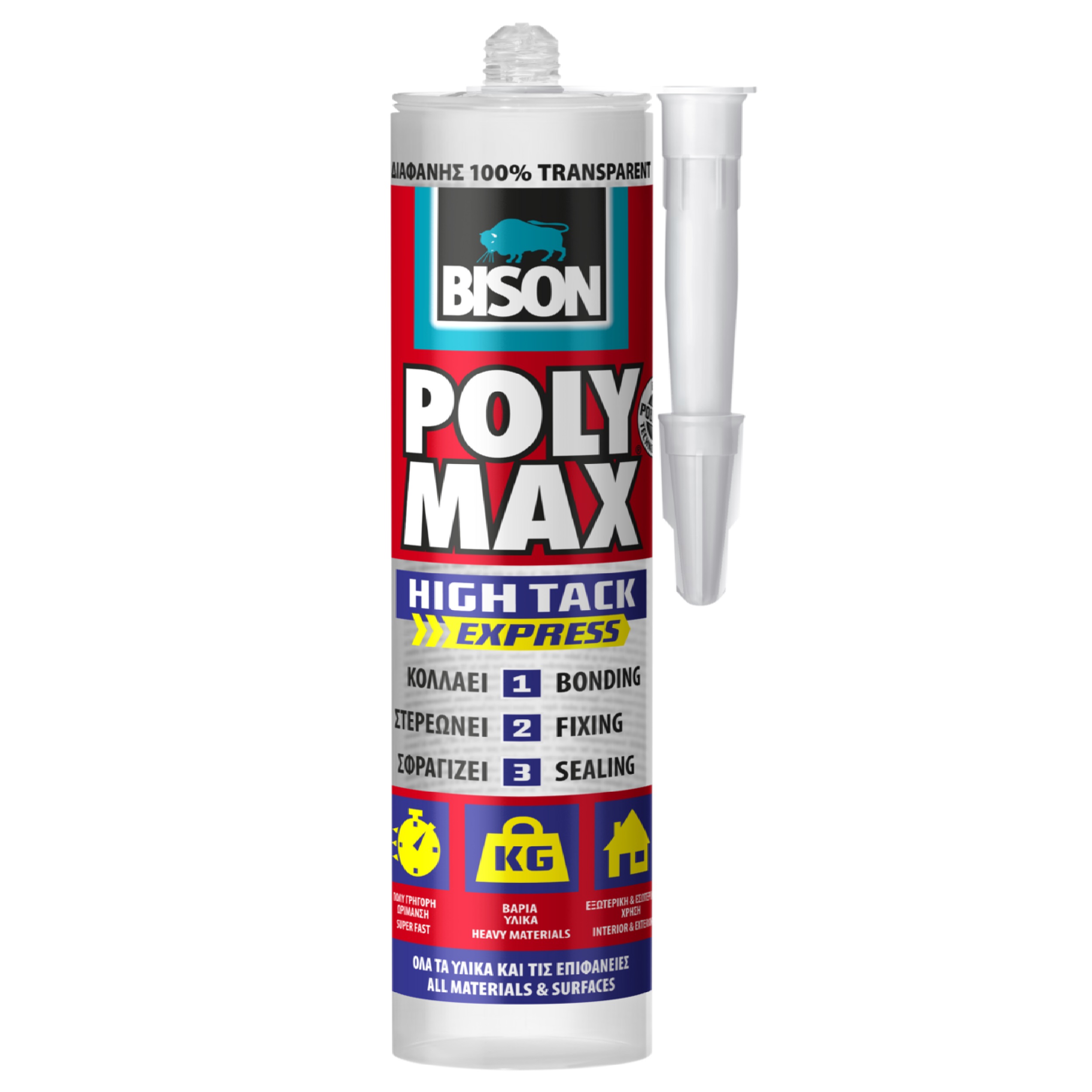BISON, set, montažno ljepilo Poly Max High Tack Express Transparent 300g + pištolj