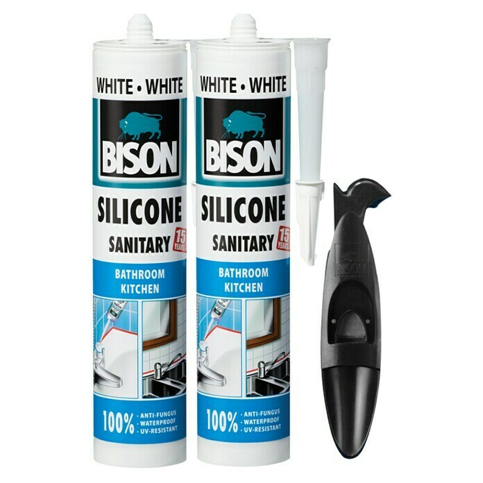 BISON, set, sanitarni bijeli silikon 2x280ml + pištolj za kartušu