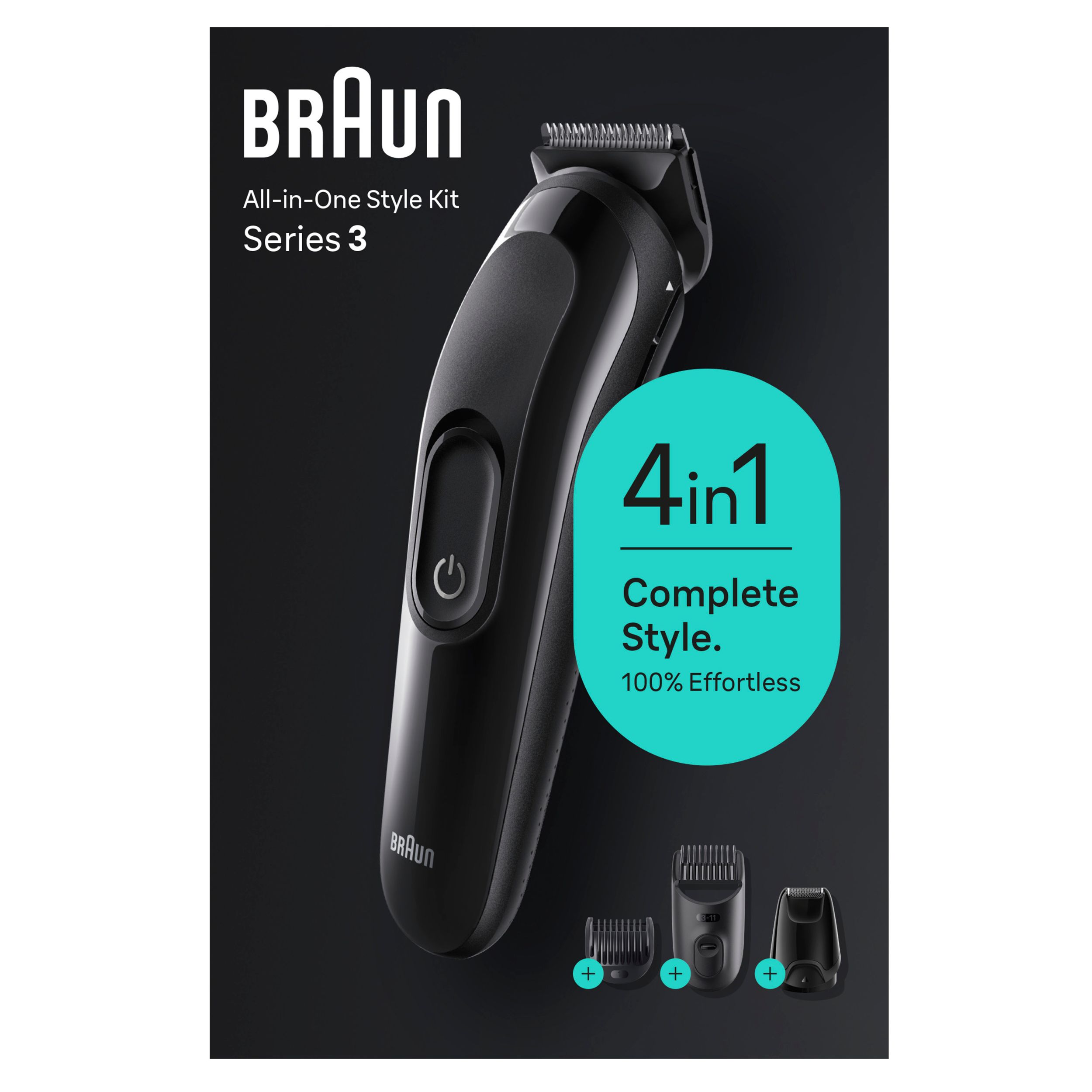 Njegujte bradu, lice i kosu pomoću Braun All-In-One Style Kit Series 3. S iznimno oštrim oštricama, punjiv i trajanjem baterije od 50 minuta bez kabela.