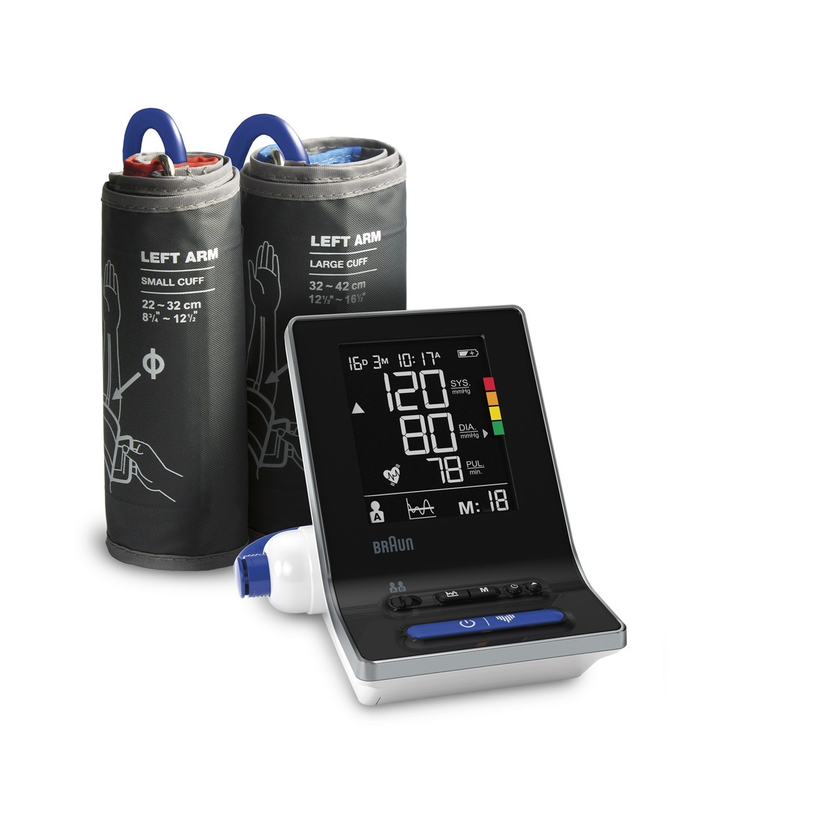 Jednostavan je za korištenje i ergonomskog je dizajna. S profesionalnom točnošću i bojom označenim indikatorom razine krvnog tlaka nudi brzo i jednostavno očitanje krvnog tlaka.