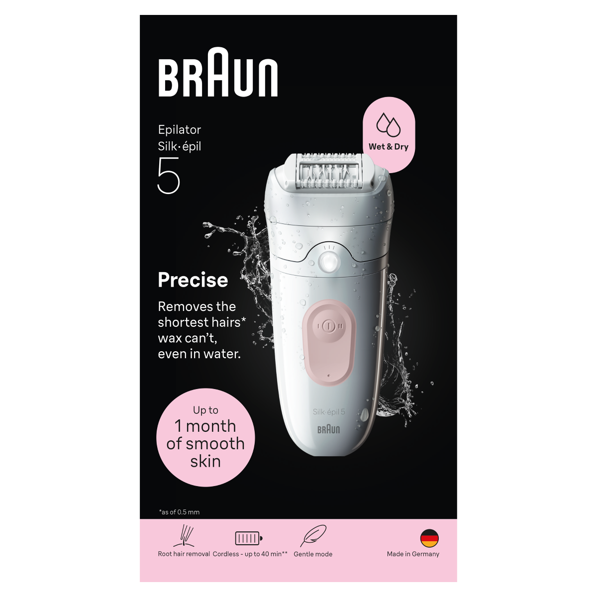 Braun Silk-épil 5 5-000 osigurava do mjesec dana glatke kože, bilo kada i bilo gdje. Ovaj Braunov epilator ima pincete MicroGrip koje mogu uhvatiti dlačice koje vosak ne hvata (čak i one duljine samo 0,5 mm). Iskusite manje boli zahvaljujući nastavku s masažnim kotačićima. I zaboravite na čekanje da dlačice izrastu na dostatnu duljinu da bih se moglo ukloniti drugim proizvodima za uklanjanje dlačica poput voska. Ovaj bežični epilator dizajniran je za praktičnost te eliminira potrebu za čišćenjem ili zakazivanjem termina u salonu. Savjet: za manji osjećaj boli, epilirajte se u kadi ili pod tušem u toploj vodi.