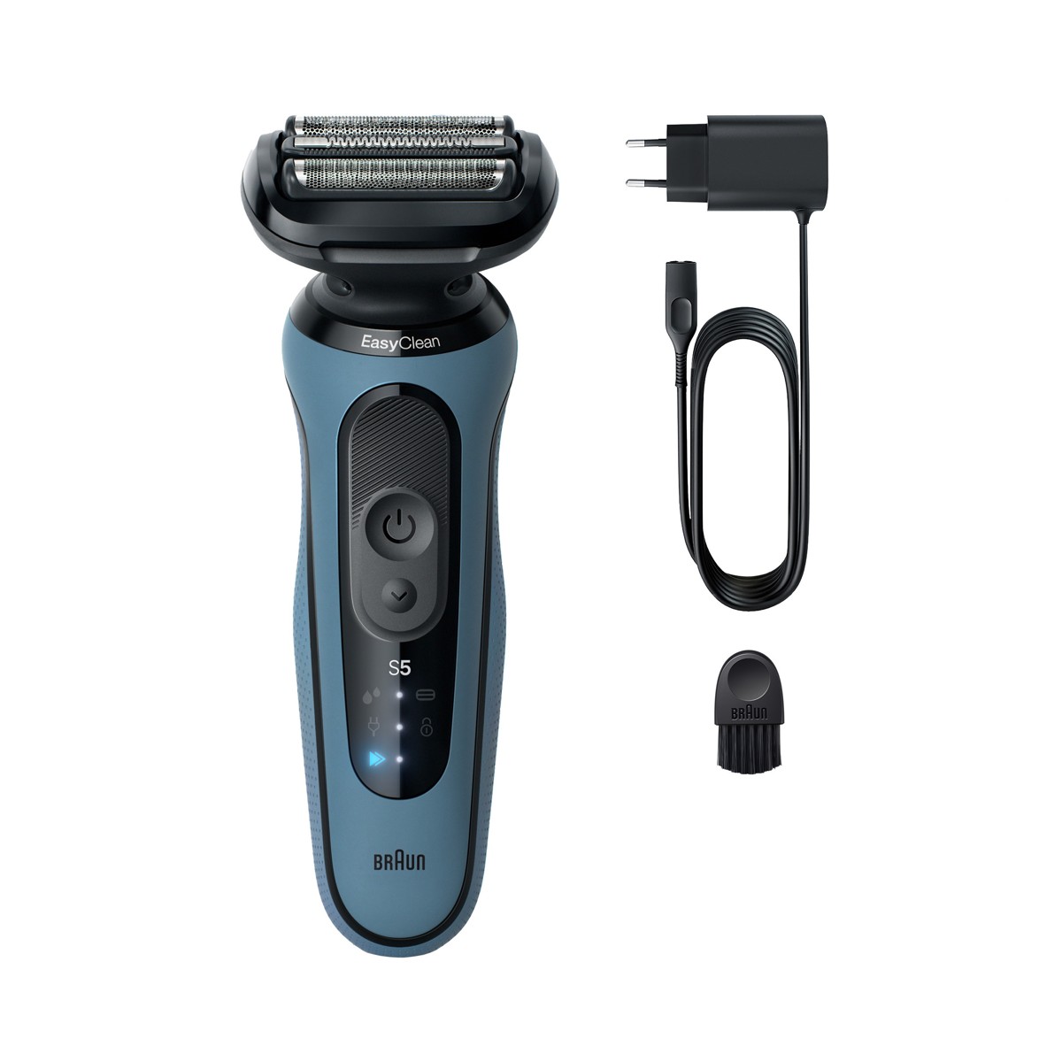 U kompletu dobivate: 1 brijaći aparat Series 5 azurne boje s crnim detaljima, 1 punjač i 1 četkicu za čišćenje.