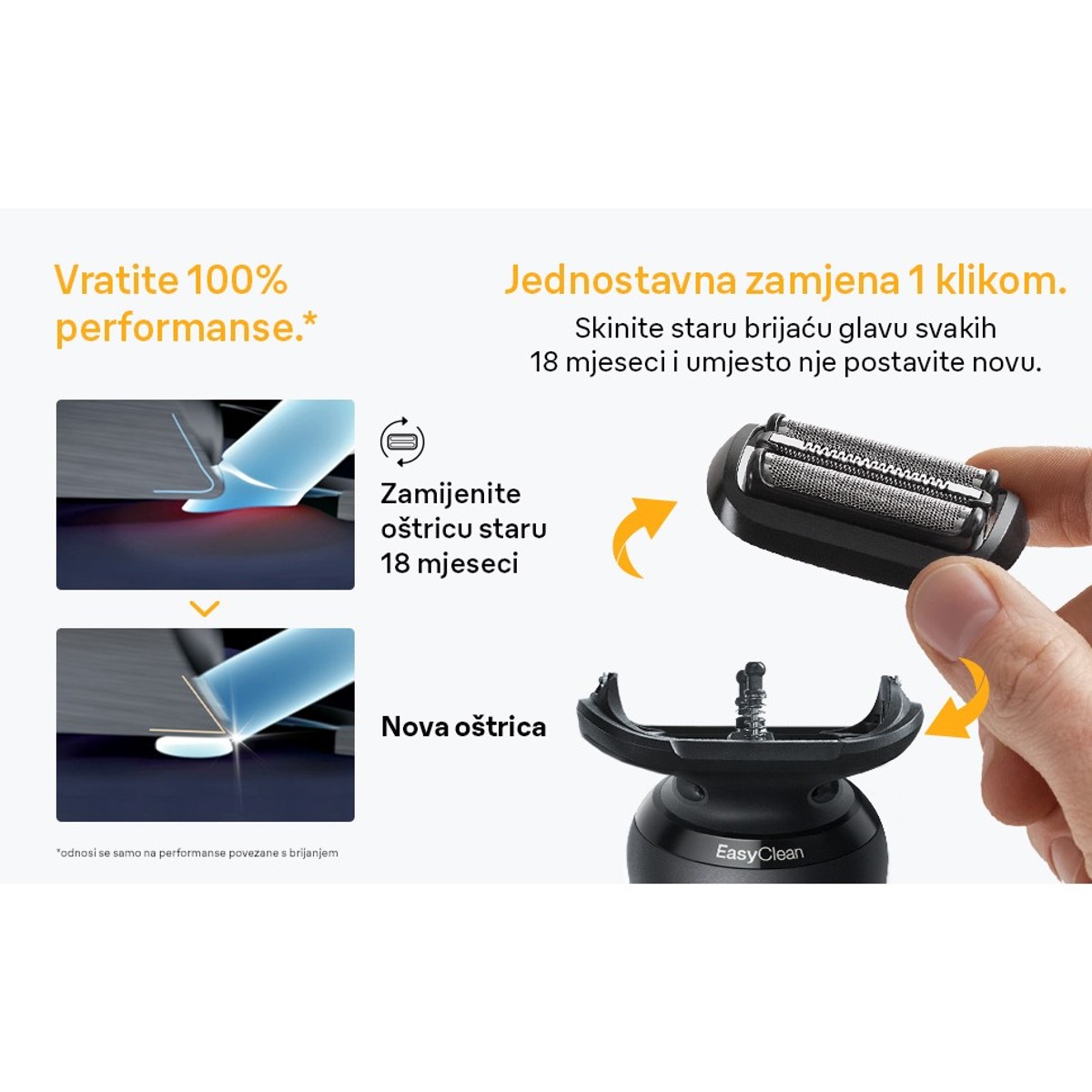 Vratite svom brijaćem aparatu 100% performanse brijanja! Braun preporučuje zamjenu mrežice i bloka noža svakih 18 mjeseci, budući da se glava nakon brijanja oko 6.000.000 dlačica prirodno istroši.