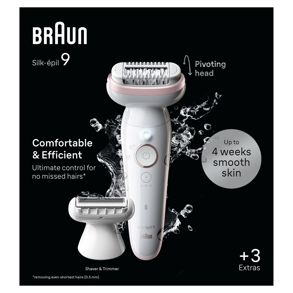 Braun Silk-épil 9 osigurava do mjesec dana glatke kože, bilo kada i bilo gdje, i to učinkovito i ugodno. Svojom širokom glavom, ovaj bežični epilator za suhu i mokru upotrebu s lakoćom prati vaše konture. Njegovih 40 pinceta MicroGrip hvata čak i dlačice duljine samo 0,5 mm, osiguravajući tako dugotrajnu glatkoću kože. Uživajte u koži glatkoj kao nakon salonskog tretmana, uz vrhunsku kontrolu zahvaljujući preciznoj dršci koja udobno sjedi u ruci. I zaboravite na čekanje da dlačice izrastu na dostatnu duljinu da bih se moglo ukloniti drugim proizvodima za uklanjanje dlačica poput voska. Ovaj bežični epilator dizajniran je za praktičnost te eliminira potrebu za čišćenjem ili zakazivanjem termina u salonu. Savjet: za smanjenje boli, epilirajte se u kadi ili pod tušem u toploj vodi. Stvoreni da traju godinama: naši su epilatori proizvedeni u Njemačkoj.