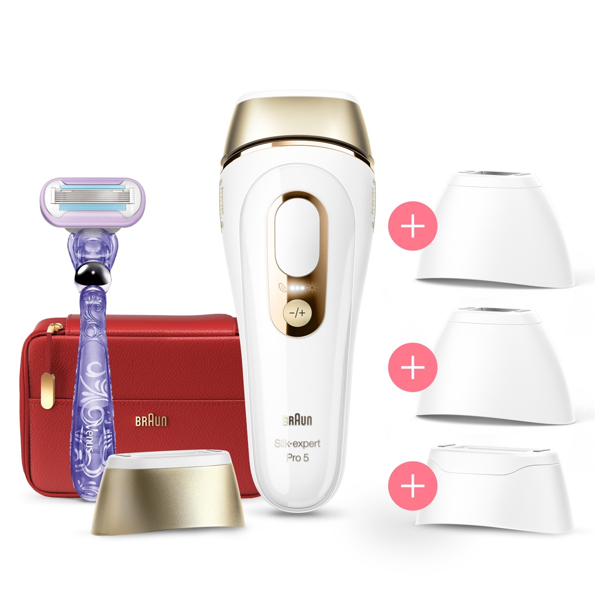 Silk- expert Pro 5 najbolji je Braunov IPL uređaj. To nije laserski aparat za uklanjanje dlačica, već uređaj koji koristi naprednu IPL tehnologiju koja osigurava do 6 mjeseci glatke kože u udobnosti vašeg doma, s primjetnim smanjenjem dlačica već za samo 4 tjedna (74% manje dlačica nakon 12 tjednih tretmana – kombinirana vrijednost za bikini-zonu, noge i pazuhe; rezultati se mogu razlikovati od osobe do osobe). Senzor Skin pro 2.0 (SensoAdapt™) automatski prilagođava rad uređaja nijansi vaše kože kako bi se dobila optimalna ravnoteža brzih rezultata i nježnosti prema koži. Dvije postavke za nježnost osiguravaju da tretman bude ugodan, a do 125 bljesaka u minuti znači da će biti manje propuštenih mjesta dok klizite uređajem po koži.