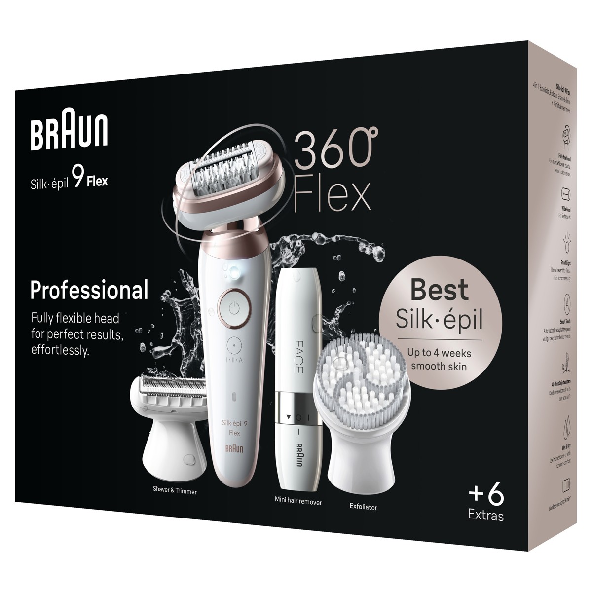 Predstavljamo Braun Silk-épil 9 Flex 9 3D, vrhunsko rješenje za dugotrajno uklanjanje dlačica. Uživajte u koži glatkoj kao nakon salonskog tretmana u udobnosti svog doma. Vaša će koža biti svilenkasto glatka zahvaljujući potpuno fleksibilnoj glavi koja s lakoćom uklanja dlačice čak i na zahtjevnim područjima poput koljena ili pazuha. Prilagođava se vašim konturama, čineći uklanjanje dlačica nevjerojatno lakim. Ovaj bežični epilator ima 40 pinceta MicroGrip koje hvataju i uklanjaju čak i najtanje dlačice (duljine samo 0,5 mm), pa se možete pozdraviti s čekanjem dlačica da narastu. Njegova široka glava pokriva velika područja pa s manje poteza dolazite do potpuno glatke kože. Kako biste smanjili osjećaj boli, preporučujemo vam da se epilirate pod tušem ili u kadi. Precizna drška ovog epilatora dobro sjedi u ruci čak i kad je mokra. Zaboravite na zakazivanje termina u salonu ili čišćenje nakon kućnih tretmana voskom i prepustite se uživanju u prekrasno glatkoj koži. Stvoreni da traju godinama: naši su epilatori proizvedeni u Njemačkoj.