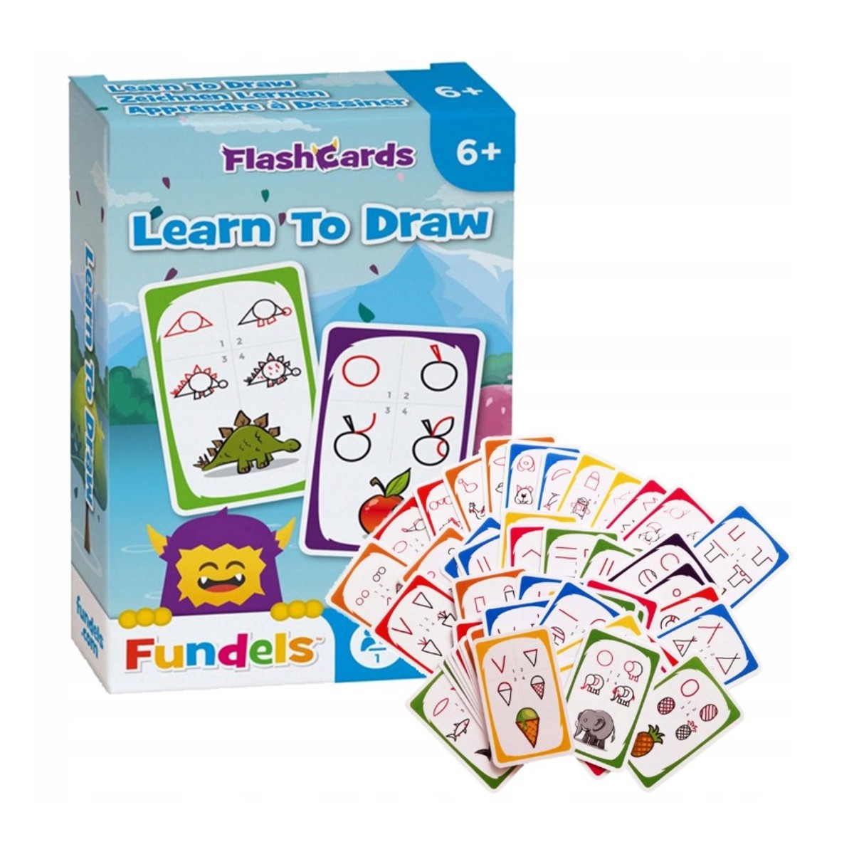 Uz Fundels kartice za crtanje, djeca na brz i jednostavan način razvijaju vještine crtanja kroz konceptualno razmišljanje. Svaka kartica vodi dijete kroz četiri jednostavna koraka, pomažući mu da od osnovnih oblika i linija stvori prepoznatljive crteže.