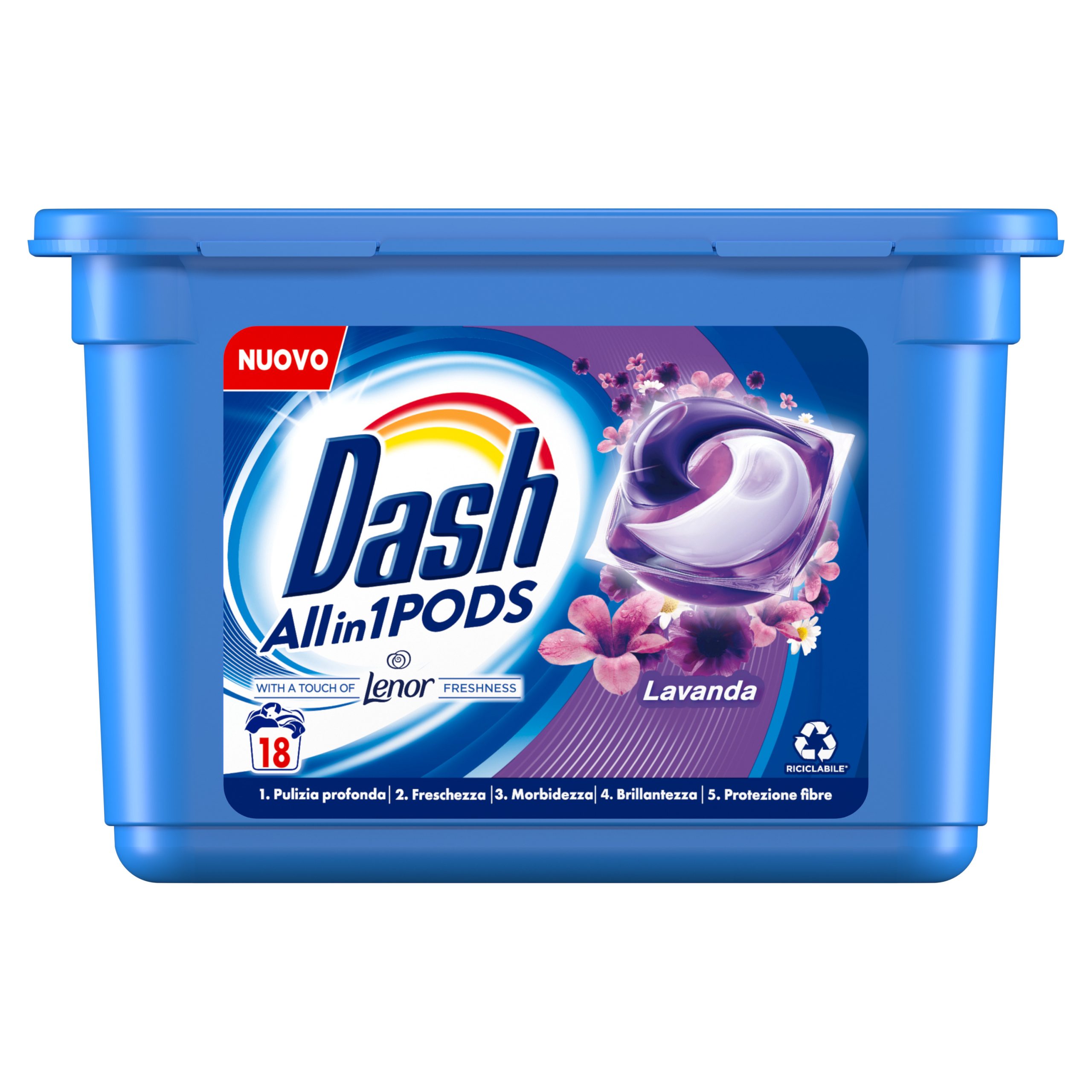 Izvanredna snaga čišćenja u jednoj maloj kapsuli. Deterdžent Dash Allin1 Pods Touch of Lenor na vašoj odjeći ostavlja nevjerojatnu mirisnu svježinu lavande.