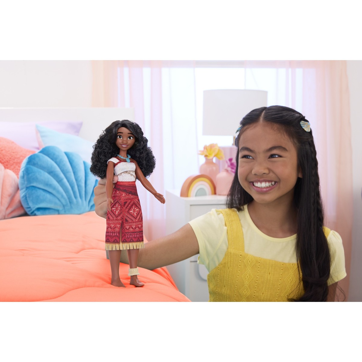 Otkrijte svijet igre s Disney Princezom Vaiana 2! Savršeno za male i velike istraživače, ovaj proizvod razveselit će svako dijete. Inspirirana Disneyjevim filmom Vaiana 2, djeca će obožavati sanjariti o beskrajnim morskim avanturama s Vaianom, modnom lutkom. Kao hrabra liderica, Vaiana je spremna istraživati kopno i more. Spremna za svako putovanje, Vaiana lutka odjevena je u svoj avanturistički outfit iz filma, a uz to ima ogrlicu i narukvicu na nozi. Njezina duga, valovita kosa može se kretati kao i njezine pokretne ruke, glava i noge. A ni jedno morsko putovanje nije potpuno bez briljantne Vaiane! Lutke ne mogu samostalno stajati. Boje i ukrasi mogu varirati.