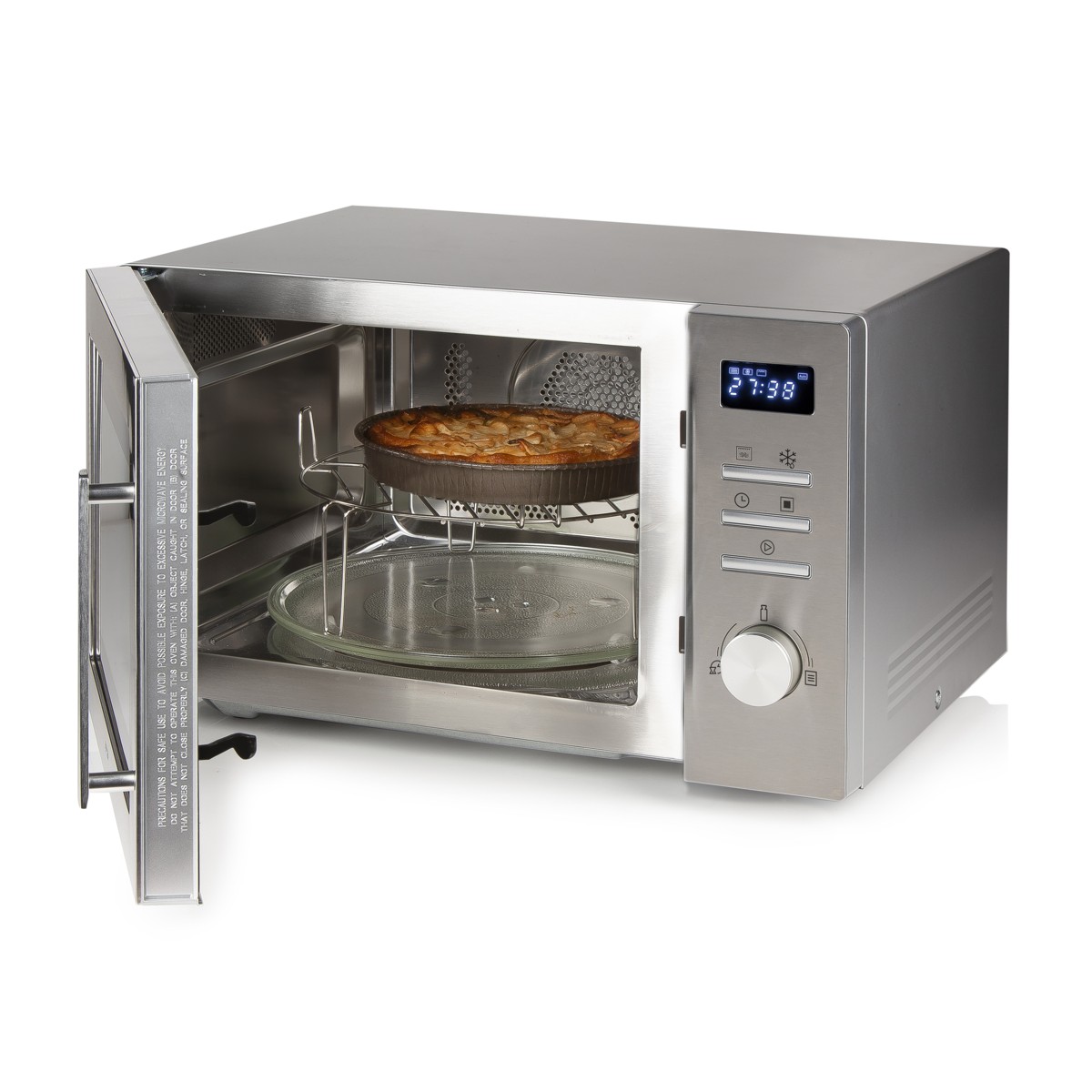 Ova moderna i svestrana mikrovalna kombinira tri funkcije u jednoj: mikrovalnu pećnicu, roštilj (sa rešetkom za roštilj) i konvekciju.
