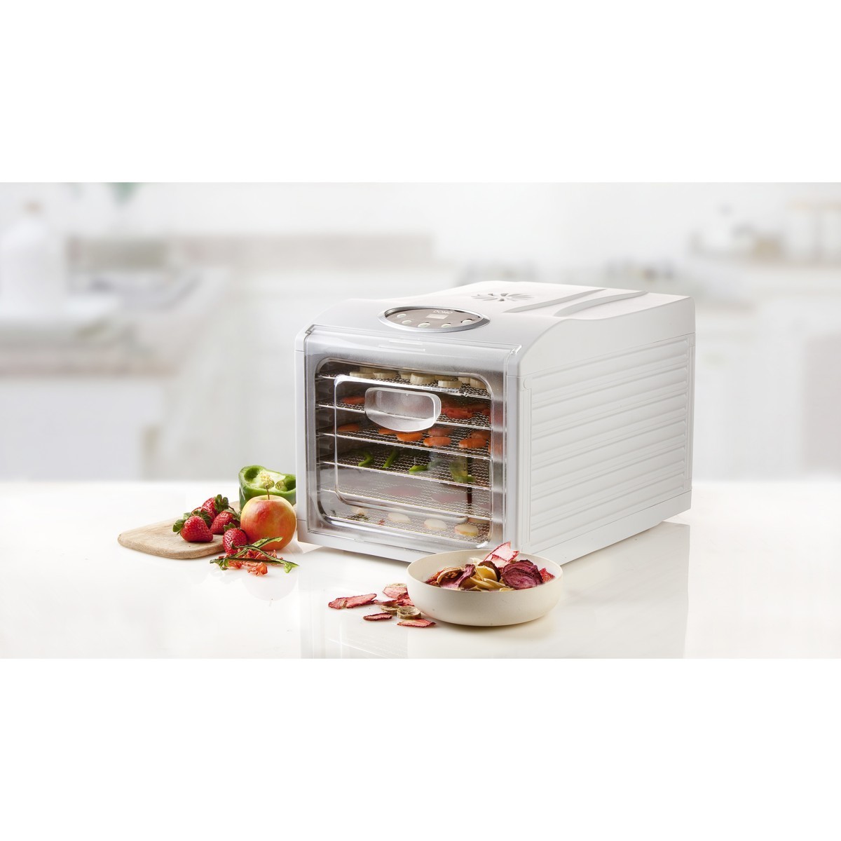 S ugrađenim automatskim mjeračem vremena lako je odrediti koliko dugo želite sušiti hranu. Nakon isteka vremena, sušilica će se isključiti i možete izvaditi svoje ukusne zalogaje. Također ima kontrolu temperature tako da možete sušiti sve vrste hrane na najučinkovitiji način. To ga čini pogodnim za sušenje različitih vrsta voća, povrća i mesa, budući da svaka namirnica treba različitu temperaturu.