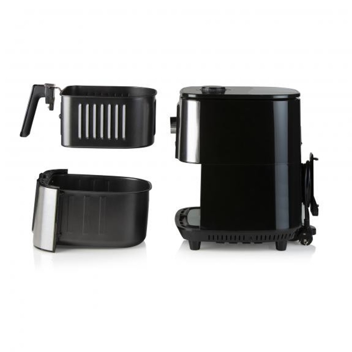 Friteza na vrući zrak DOMO DO536FR postiže savršene rezultate zahvaljujući učinkovitoj cirkulaciji zraka kroz perforirane stijenke posude, a kroz perforirano dno košare za prženje možete skupiti višak masnoće ili sokove od kuhanja na dnu posude. Čišćenje i održavanje košare i tave uvelike će vam olakšati visokokvalitetna neprianjajuća površina. Friteza na vrući zrak može se uspješno koristiti i kao zamjena za kućnu pekarnicu. Za pečenje domaćeg kruha tijesto se može staviti u tepsiju.