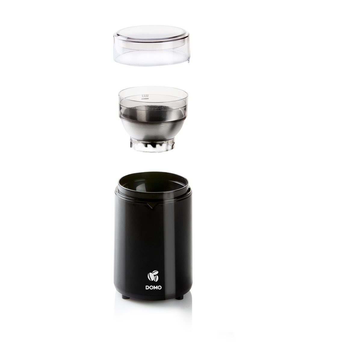 Domo DO712K električni mlinac za kavu s pomičnim inox lijevkom za pripremu do 70 g mljevene kave. Mljevenje se odvija oštrim inox nožem koji precizno imitira dno i stijenke posude, tako da se zrna kave usitnjavaju što točnije. Odvojivi lijevak može se lako isprazniti i uvijek ga održavati čistim. Uređaj se može pokrenuti samo s prozirnim poklopcem, što ga čini vrlo sigurnim za korištenje.