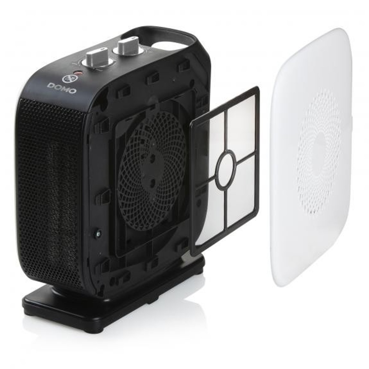 Snažno grijanje snage 1500 W, optimalna raspodjela topline zahvaljujući inovativnoj centrifugalnoj tehnologiji. 2 razine snage: integrirana funkcija nisko-podesivog osciliranja temperature i uklonjivi filtri sa sigurnosnim senzorom koji uređaj odmah isključuje ako je pokriven zaštitom od pregrijavanja i integriranom ručkom za zaštitu od nagiba za lakši transport uređaja