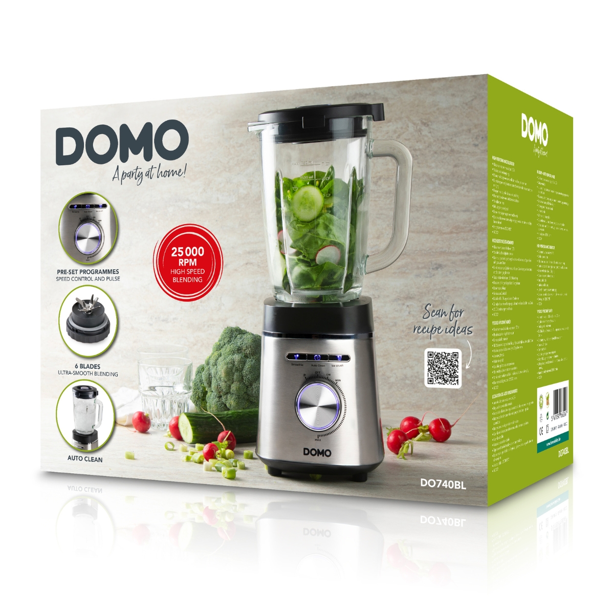 DO740BL Domo blender predstavlja idealno rješenje za sve koji traže snažan, precizan i svestran kuhinjski aparat. S naprednim funkcijama i robusnom konstrukcijom spreman je za svakodnevne izazove – od pripreme voćnih napitaka do drobljenja leda ili brzog čišćenja.