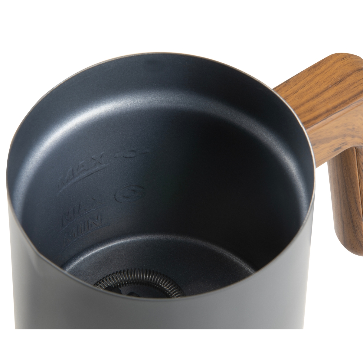 Vrč za mlijeko ima dvostruku stijenku koja zadržava temperaturu i sprječava opekline. Unutrašnjost je obložena neprianjajućim slojem, što olakšava čišćenje i osigurava dugotrajno besprijekorno funkcioniranje.