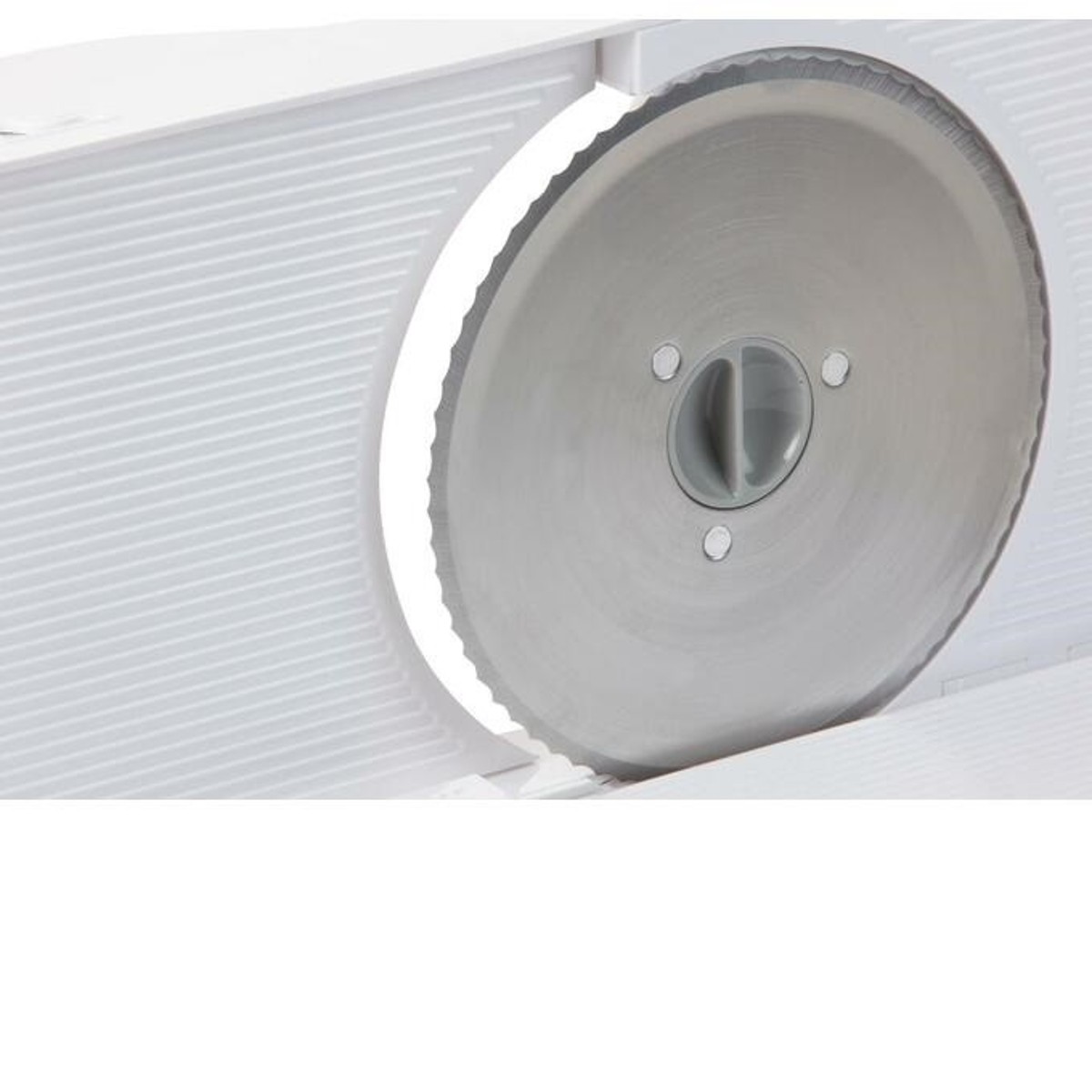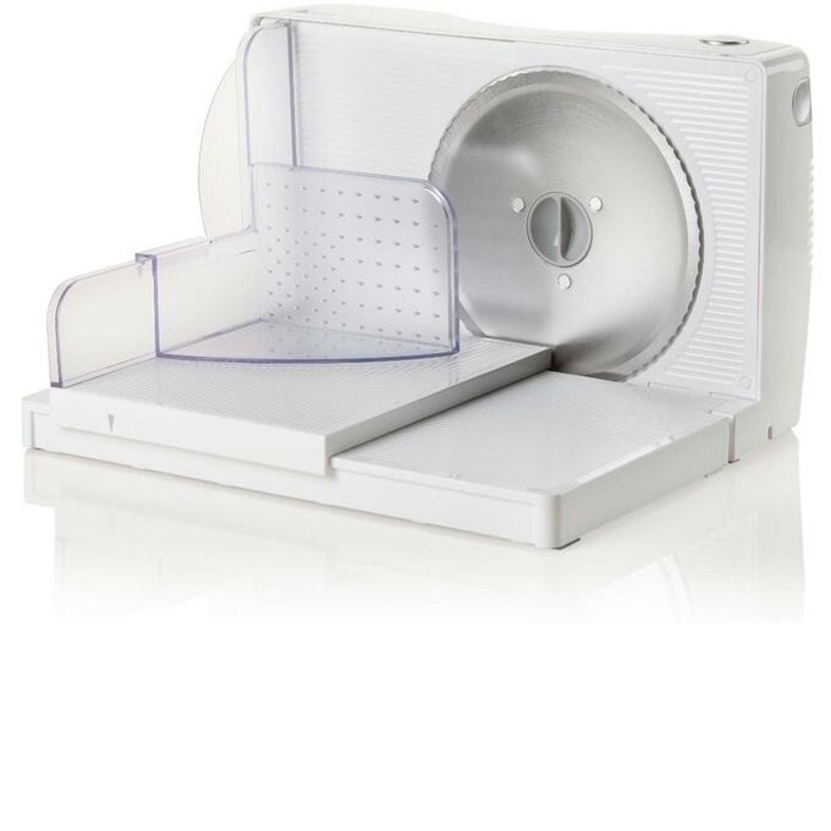 Ne može biti jednostavnije rezati kruh, povrće, meso i sir na pravu debljinu. Debljinu reza možete podesiti do 15 mm. Univerzalna rezalica ima lagano nazubljenu oštricu od nehrđajućeg čelika promjera 17 cm i sigurnosni prekidač. Nakon upotrebe, rezalica se lako čisti i pohranjuje. Uređaj dolazi s nosačem za hranu, pogurivačem i štitnikom za prste.