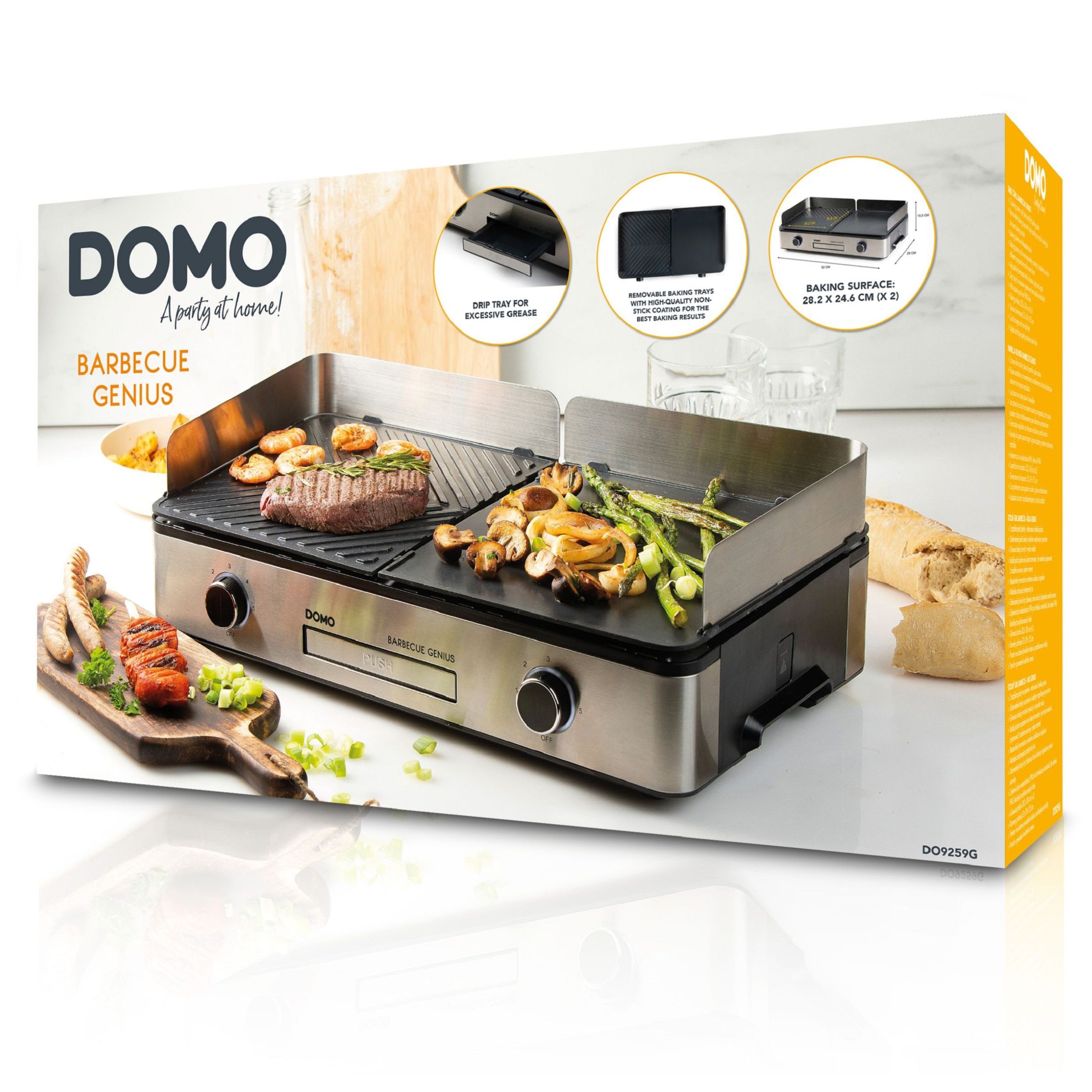 DOMO roštilj Genius je visokokvalitetan električni roštilj koji nudi izvrsnu svestranost i praktičnost za pripremu raznih jela. Ovaj roštilj je idealan za korištenje kako u zatvorenom prostoru tako i na otvorenom, čineći ga savršenim izborom za obiteljska okupljanja, zabave ili jednostavne svakodnevne obroke.