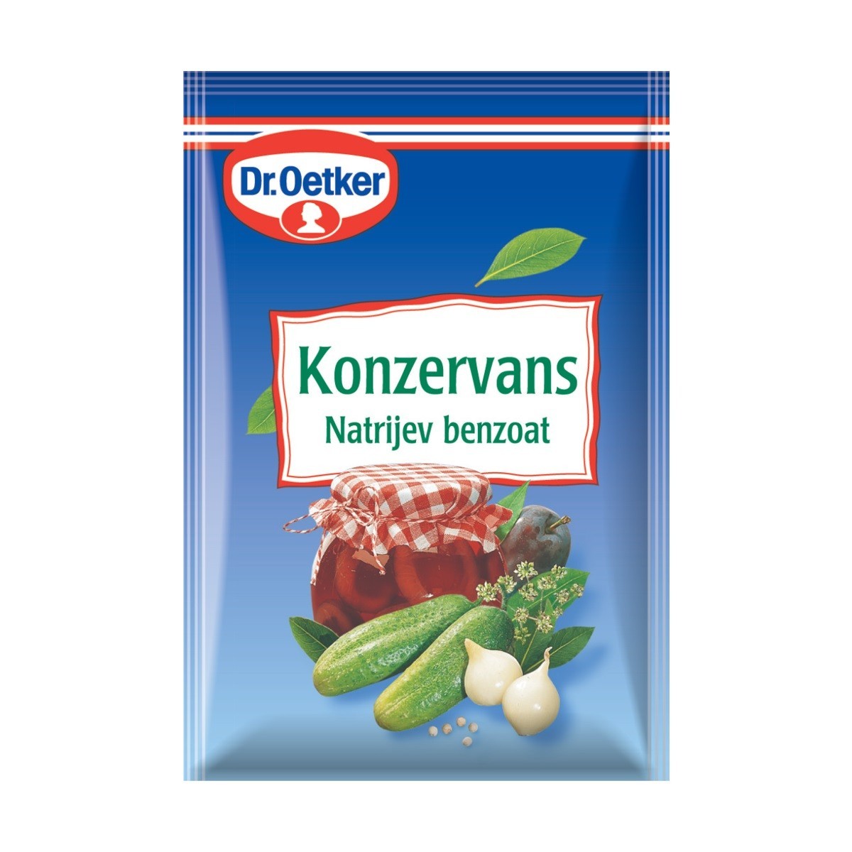 Dr. Oetker Konzervans osigurava Vašem konzerviranom voću i povrću dulju trajnost u staklenkama te štiti od vrenja i plijesni.