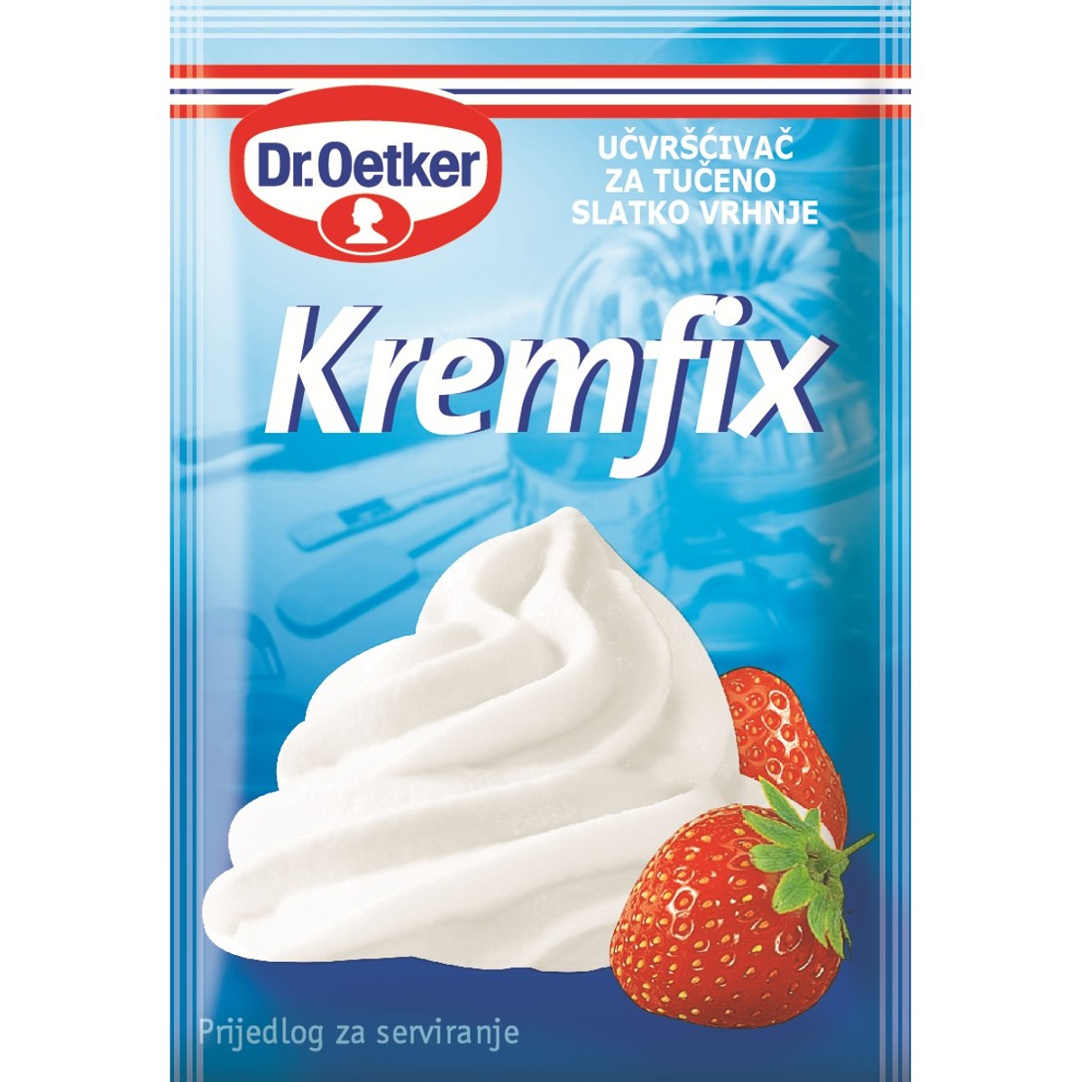 Dr. Oetker Kremfix već je dugi niz godina dokazani pomagač pri tradicionalnoj pripremi torta. Namjena mu je da tučenom šlagu daje čvrstoću. A kad se posipa po biskvitu sprječava da nadjev natopi biskvit. Tako će torte imati još primamljiviji izgled i konzistenciju.