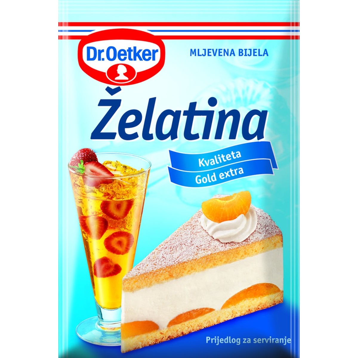 Dr. Oetker Želatina mljevena služi za učvršćivanje kremastih torta i kolača, krema i želatinastih slatkih i slanih jela. Dvije su mogućnosti pripreme: Pomiješajte sadržaj omota sa 4 žlice hladne tekućine i ostavite da nabubri. Zatim zagrijavajte do potpunog otapanja i malo ohladite prije daljnje uporabe. Drugi način je da se nakon bubrenja umiješa u 500 ml tople tekućine i miješa do potpunog otapanja. Jedan omot dovoljan je za 500 ml tekućine i odgovara količini od 6 listića Dr. Oetker Želatine u listićima. NAPOMENA: Želatina ne uspijeva sa svježim ananasom, kivijem, papajom i smokvom.