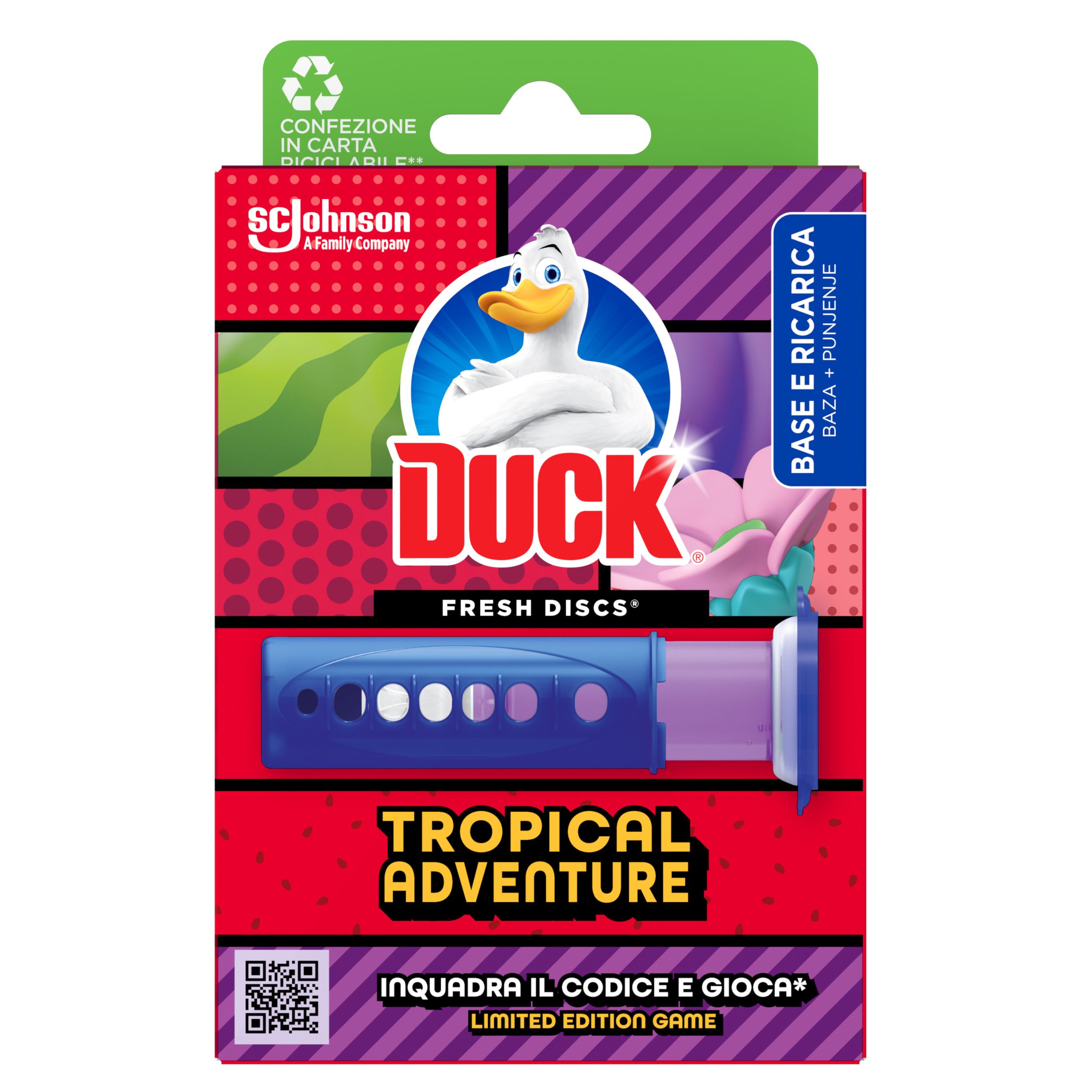 Duck® Fresh Discs – Virtual Violet, gel za čišćenje i osvježavanje WC školjke pruža praktično i učinkovito rješenje za čistoću i svježinu vaše kupaonice. S formulom koja osigurava do 7,5 tjedana svježine. Odiše osvježavajućim mirisom pružajući dugotrajnu svježinu i ugodan miris. Napravljen od 80% plastike prikupljene uz obalu, Duck® Fresh Discs pomaže u očuvanju okoliša dok brine o higijeni vašeg doma. Kombinira dizajn i održivost, čineći ga savršenim izborom za svježu i čistu WC školjku svaki dan.