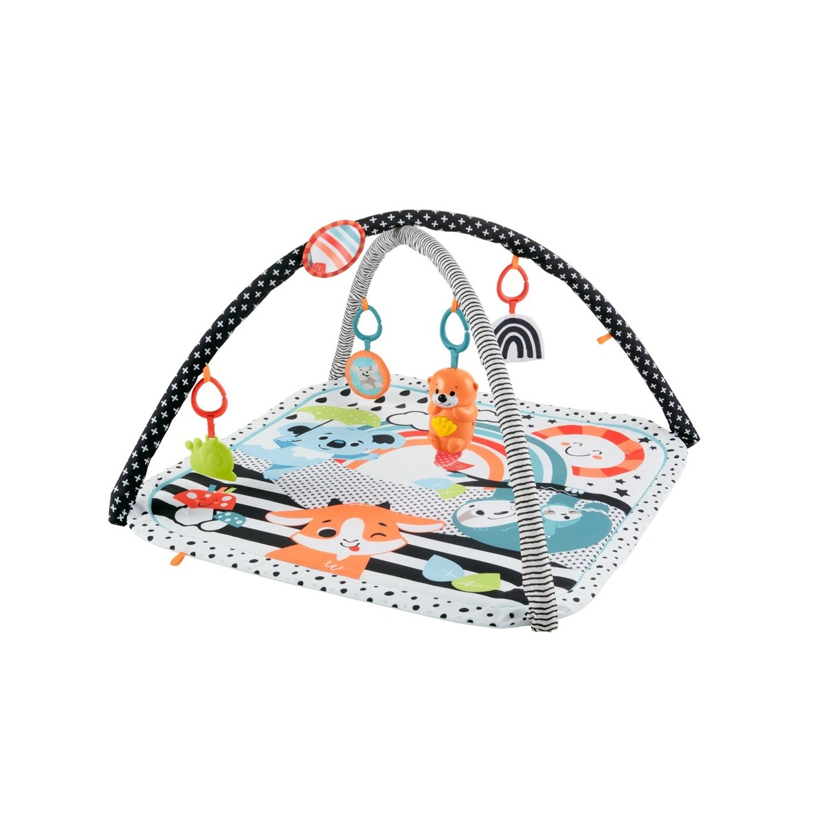 Kako beba raste, maknite dva lutka i može započeti igra na trbuščiću. Podloga i igračke su u kontrastnim bojama što pomaže vizualnom razvoju djeteta.