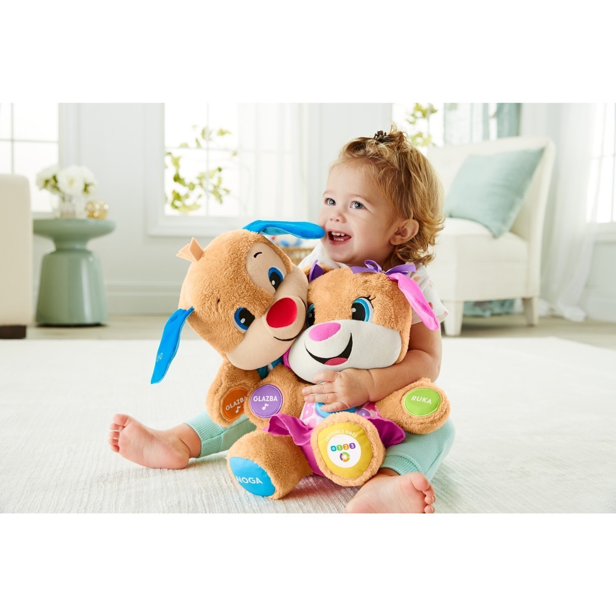 Beba može pritisnuti psićeve ruke, šapicu, srce ili uho kako bi čula više od 100 prvih riječi; boje, slova, dijelove tijela i puno više toga!