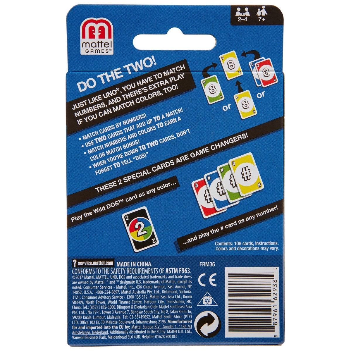 U ovoj zabavnoj igri, dva je važniji od jedan, a podudaranje po broju je glavno. Kao i kod UNO karata, i u igri DOS cilj je biti prvi koji će se riješiti karata. Na početku igre okreću se dvije karte i prilikom svakog kruga, igrač može igrati na obje okrenute karte i to s jednom ili dvije karte. Karte koje se stavljaju na okrenute karte moraju odgovarati brojem, a ako odgovaraju i bojom to je dodatni bonus. Ako igraču ostanu dvije karte u ruci, on u sljedećem krugu može spustiti obje karte, ali ne smije zaboraviti viknuti DOS!