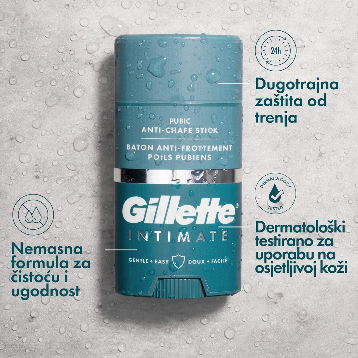 Lako nanošenje: svakodnevno nanosite Gilletteov stik protiv iritacije od trenja i uživajte u nemasnoj, glatkoj formuli