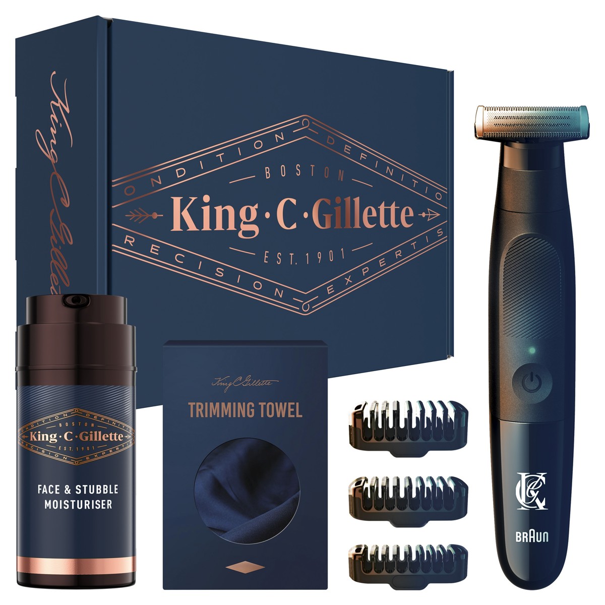 King C. Gillette poklon set za muškarce sadrži bežični trimer, hidratantni losion s vitaminima B3 i B5 kompleksom te ručnik. Svestrani alat namijenjen je za oblikovanje rubova, trimanje i temeljito podrezivanje kratkih dlačica. Ovaj bežični trimer s 4D oštricom omogućuje jednostavno, brzo i ugodno brijanje. Zamjenjiva metalna oštrica osigurava do 6 mjeseci podrezivanja dlačica. King C. Gillette hidratantni losion za bradu ublažuje svrbež i perutanje kože te njeguje lice. Lagana formula s kompleksom vitamina B pomaže ojačati prirodnu barijeru kože i pruža joj ugodan i nemasan osjećaj. Izbjegnite nered tijekom brijanja i uštedite vrijeme s ručnikom koji može poslužiti i kao ogrtač za šišanje kod kuće.