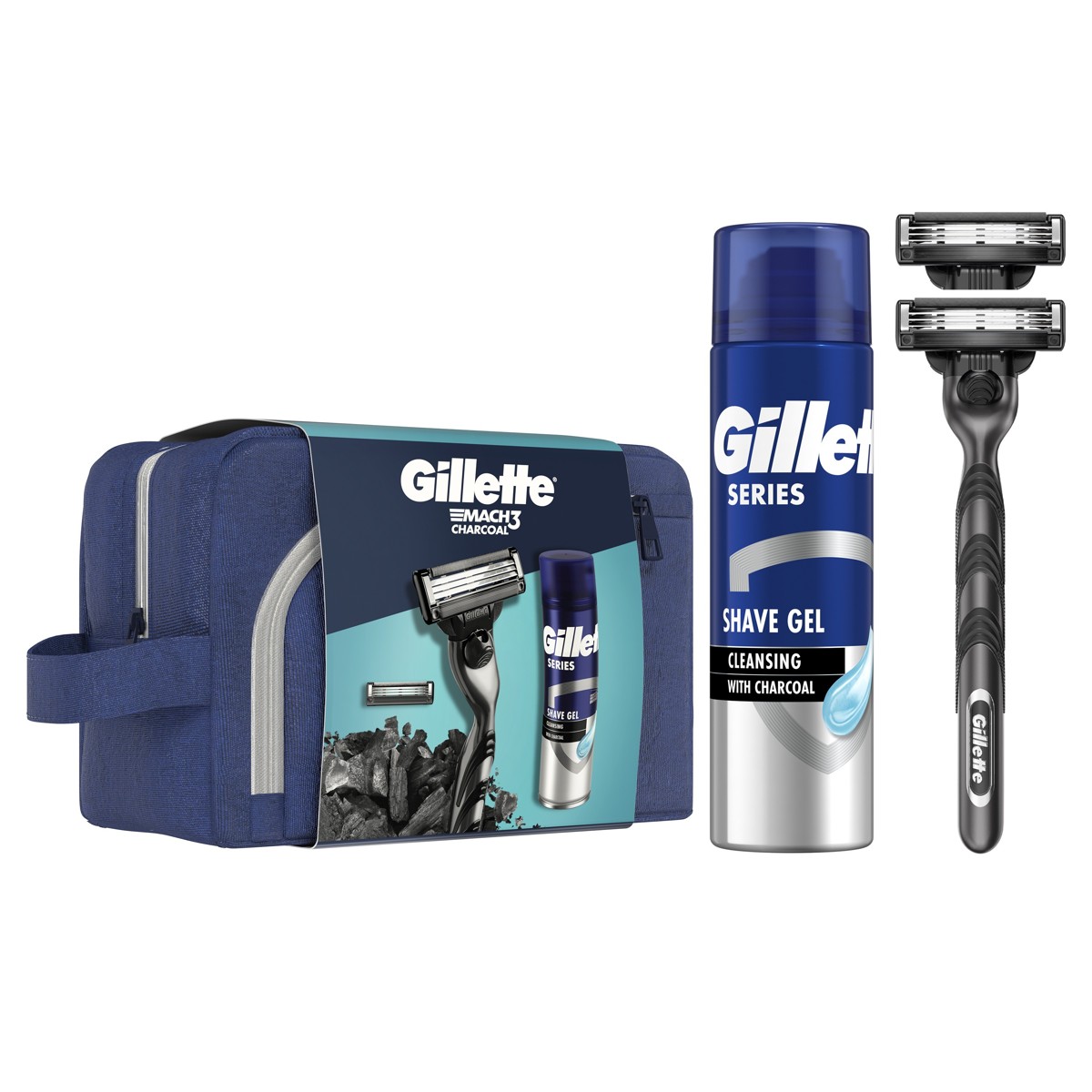 Paket sadrži: Brijač za muškarce, 1 zamjenska britvica, gel Gillette Series 200 ml, putna torbica